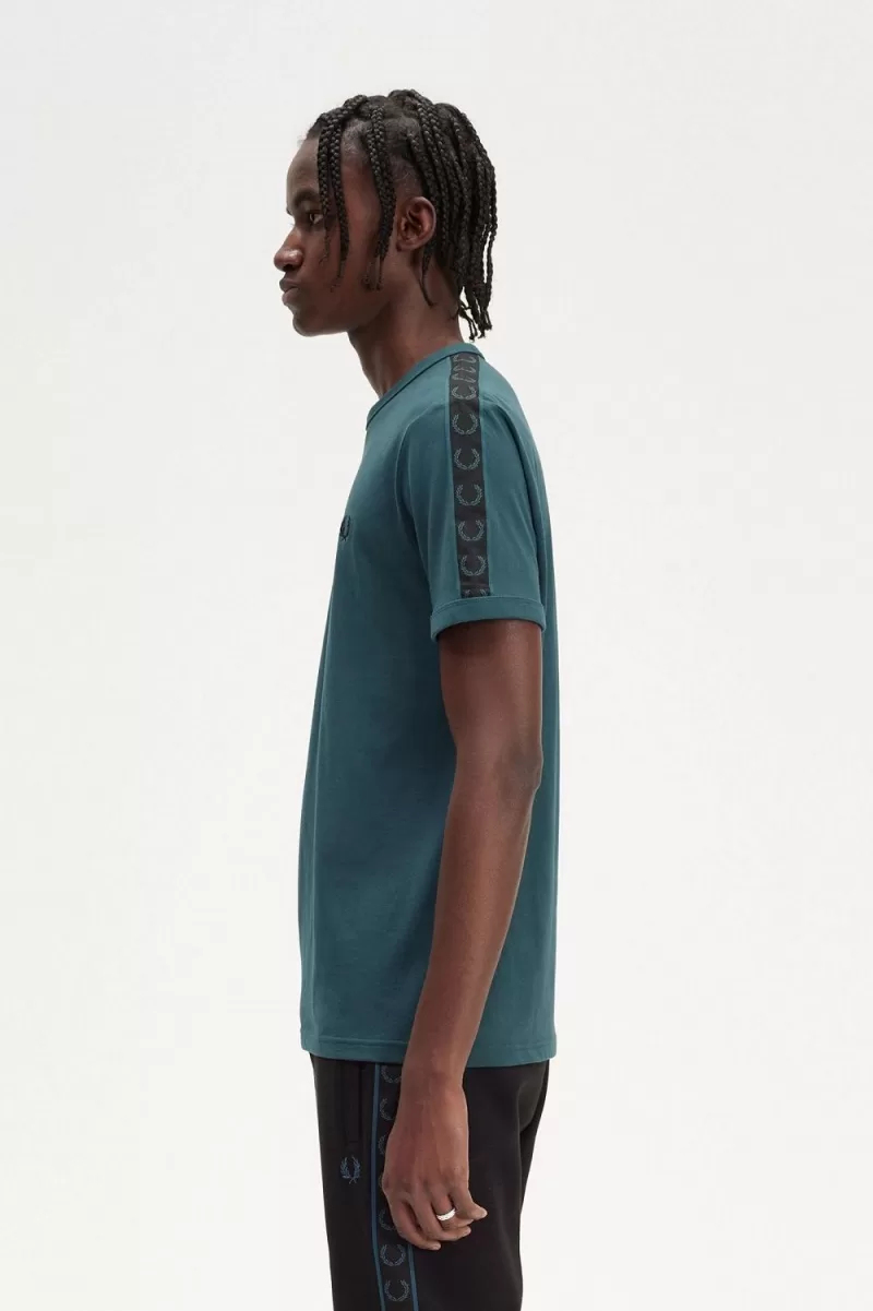 Fred Perry Contrast Tape Ringer Men’s T-Shirt Petrol Blue Black UPIVO0635