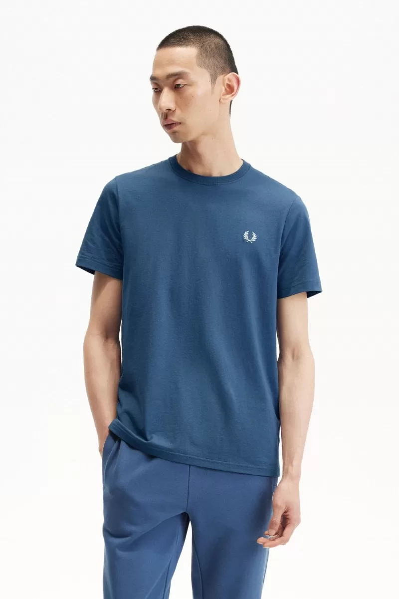 Fred Perry Crew Neck Men’s T-Shirt Midnight Blue Light Aqua OQRTE2809