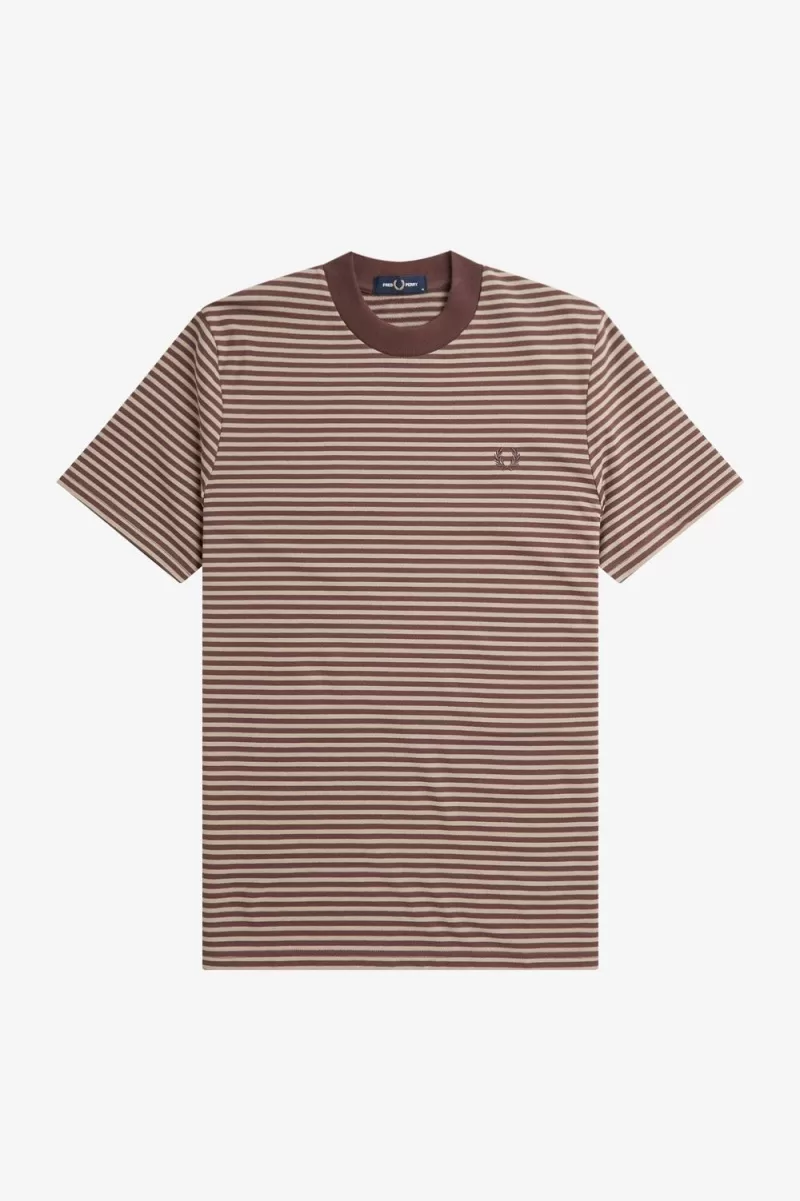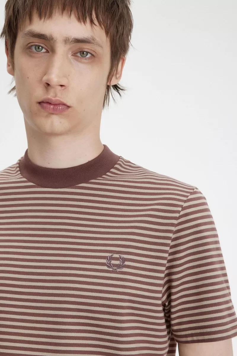 Fred Perry Fine Stripe Heavyweight Men’s T-Shirt Dark Red Warm Grey WLMOX2489