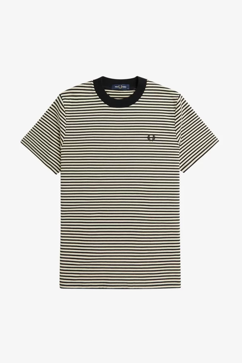 Fred Perry Fine Stripe Heavyweight Men’s T-Shirt Oatmeal Black HAGUW4218