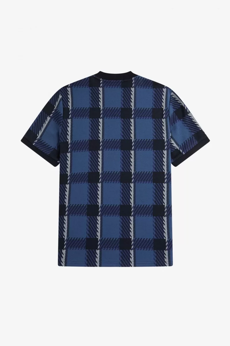 Fred Perry Glitch Tartan Men’s T-Shirt Midnight Blue BHJRG0984
