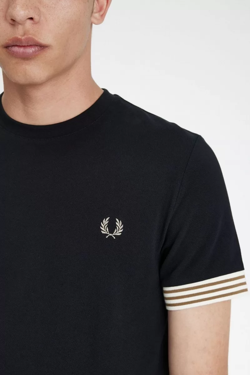 Home Men Clothing T-Shirt Fred Perry Striped Cuff Men’s T-Shirt Black WUKSJ3472