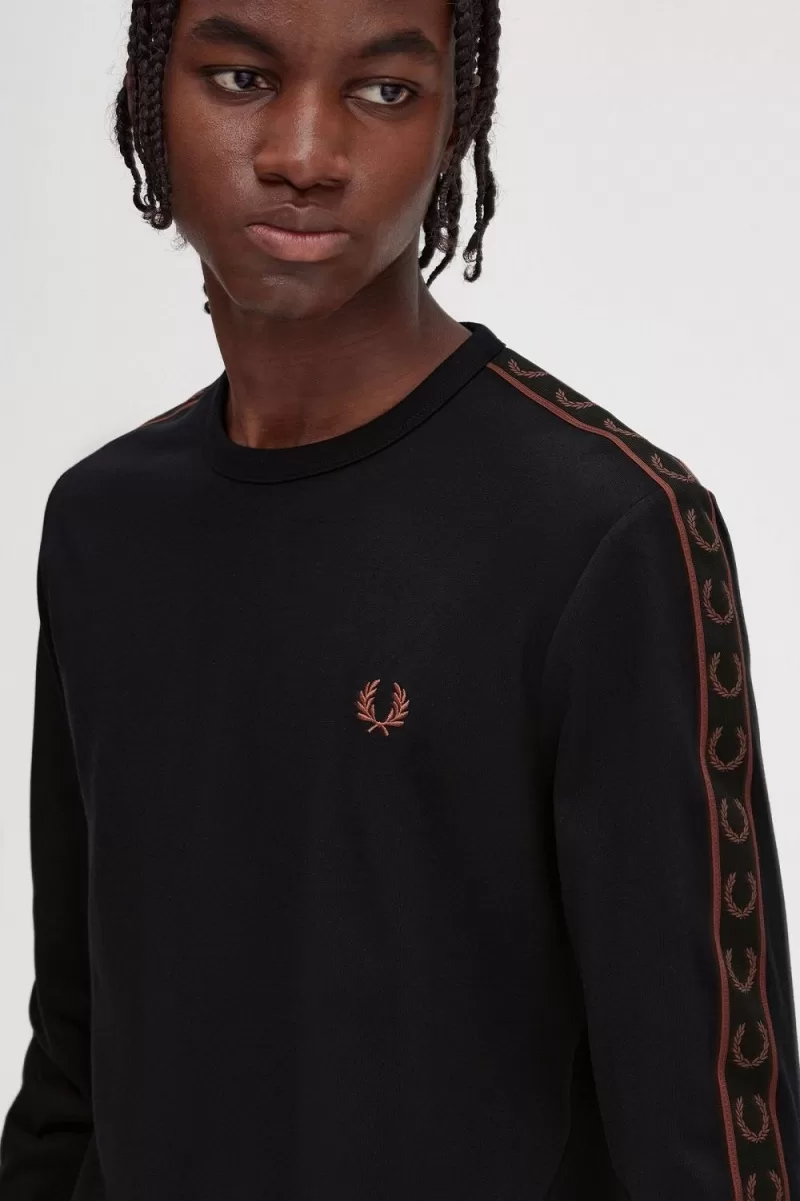 Fred Perry Taped Long Sleeve Men’s T-Shirt Black Whisky Brown SUTCO7652