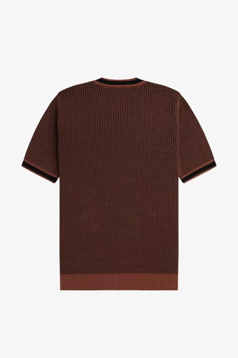 Fred Perry Textured Knitted Men’s T-Shirt Whisky Brown DRLWG9742