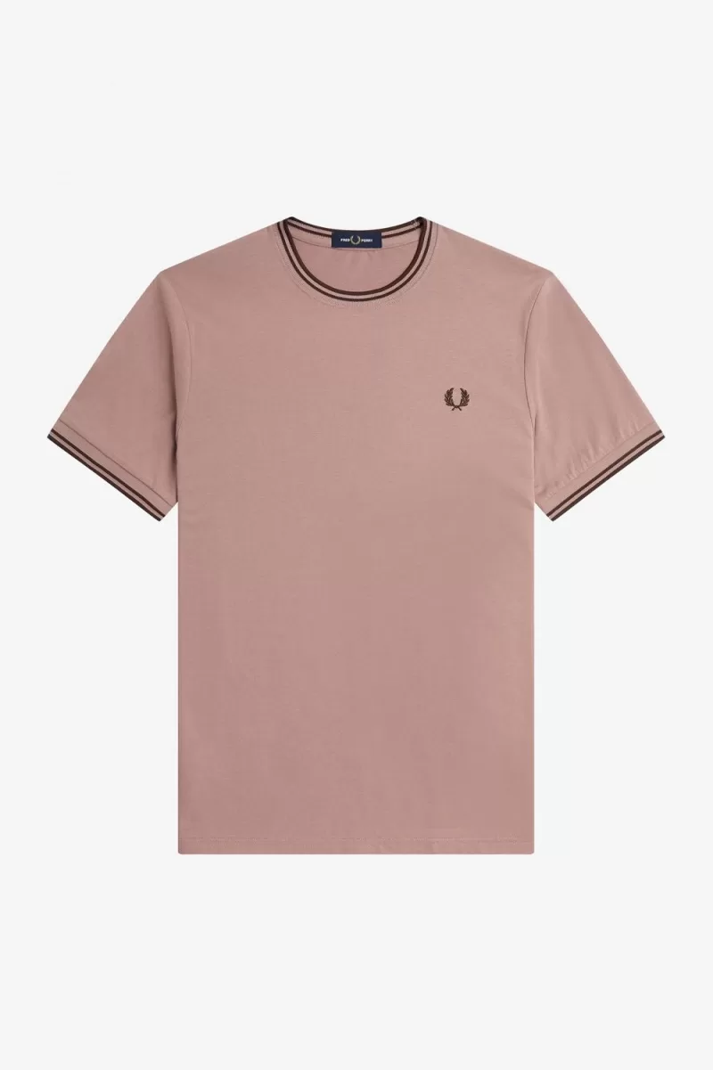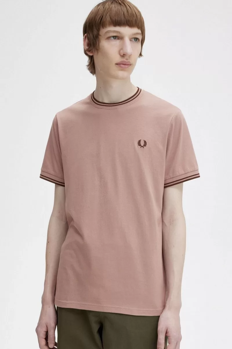 Fred Perry Twin Tipped Men’s T-Shirt Dark Pink Whisky Brown JMFOB2853
