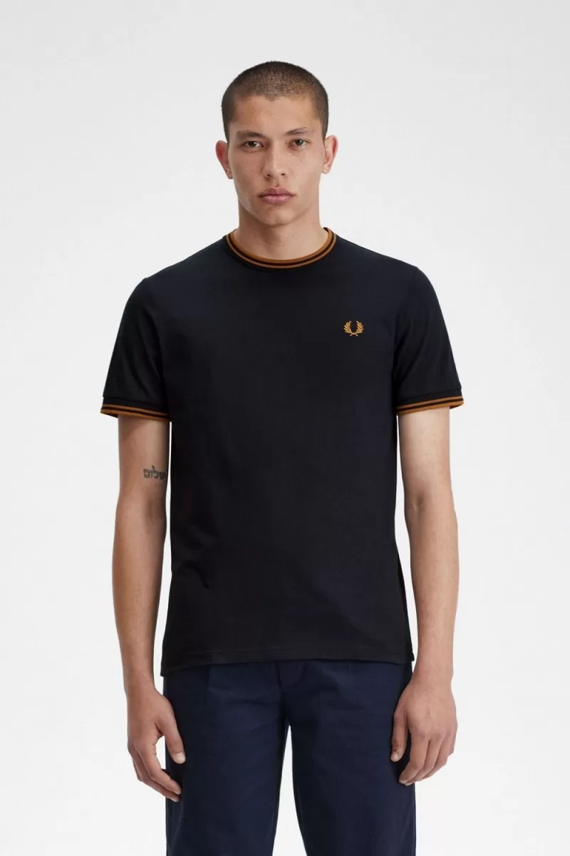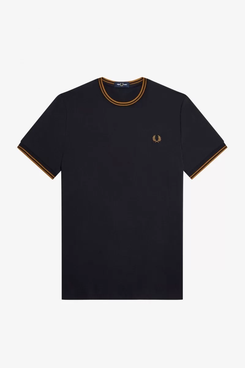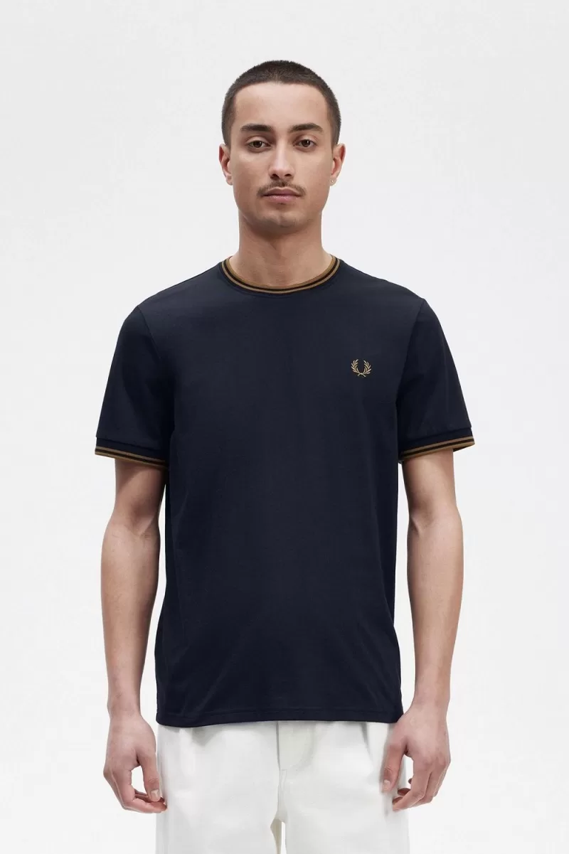 Fred Perry Twin Tipped Men’s T-Shirt Navy Dark Coffee TQJXS5043