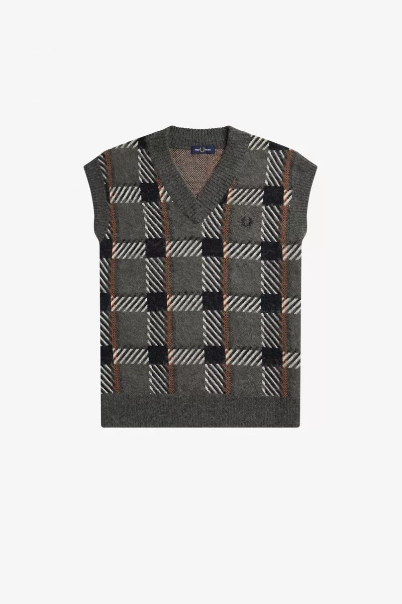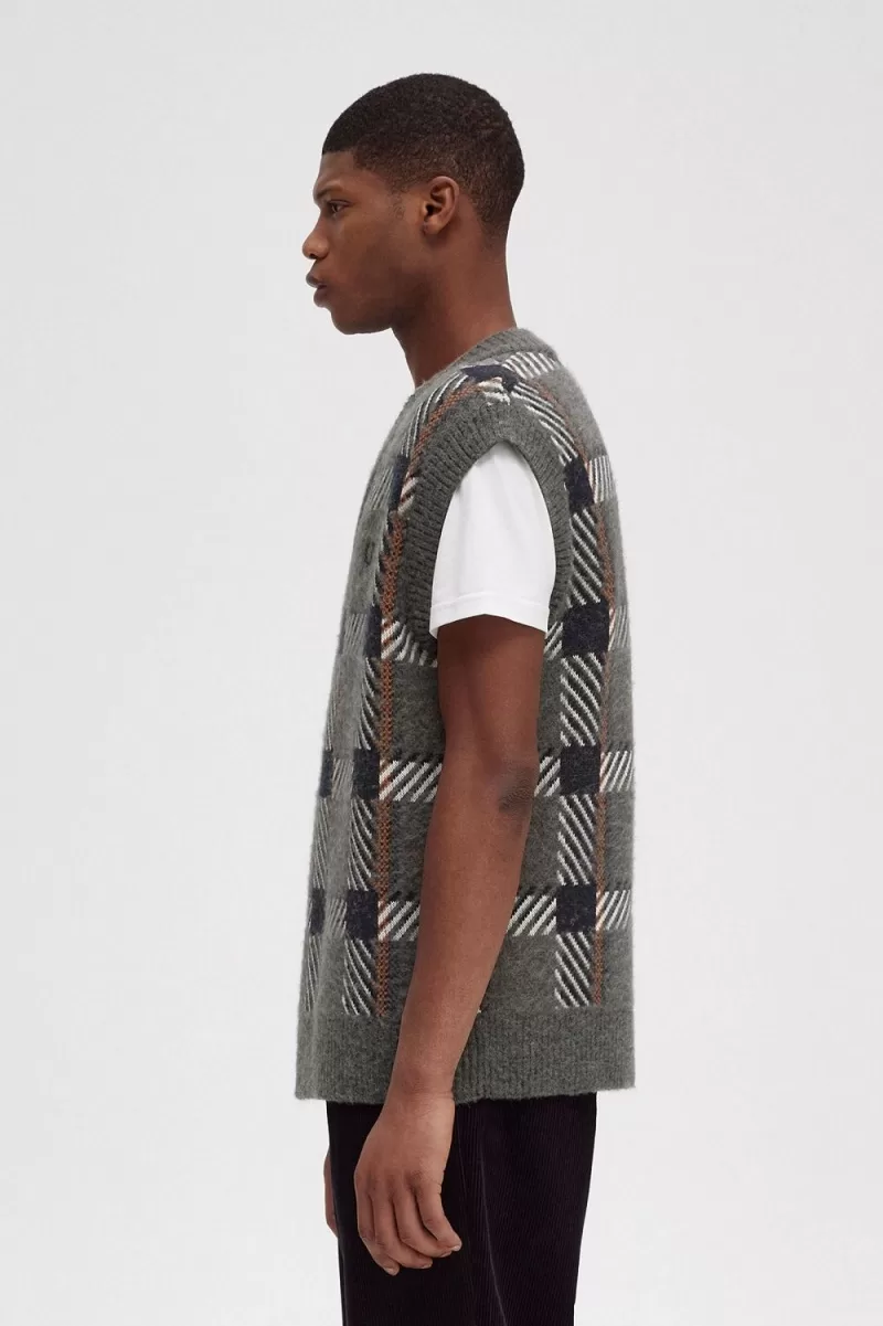 Fred Perry Glitch Tartan Knitted Men’s Tanks Field Green GXKOW6027