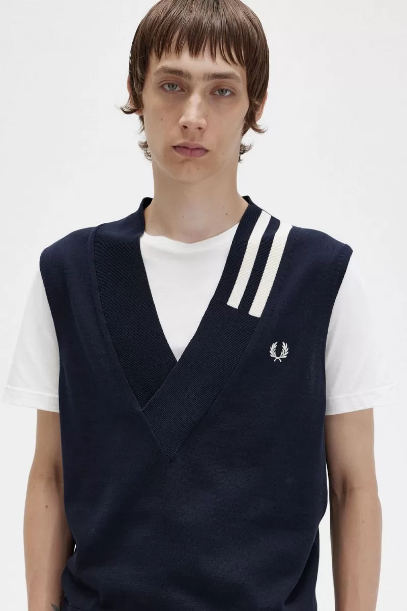 Fred Perry Tipped V-Neck Knitted Men’s Tanks Navy PCIHB1432