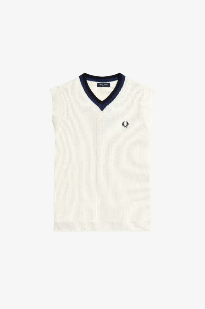 Fred Perry V-Neck Knitted Men’s Tanks Beige RTXLO0615