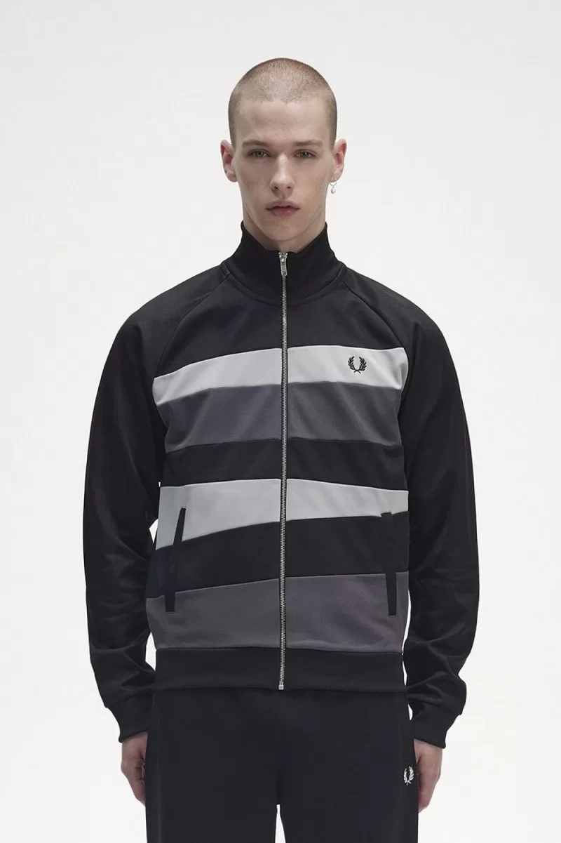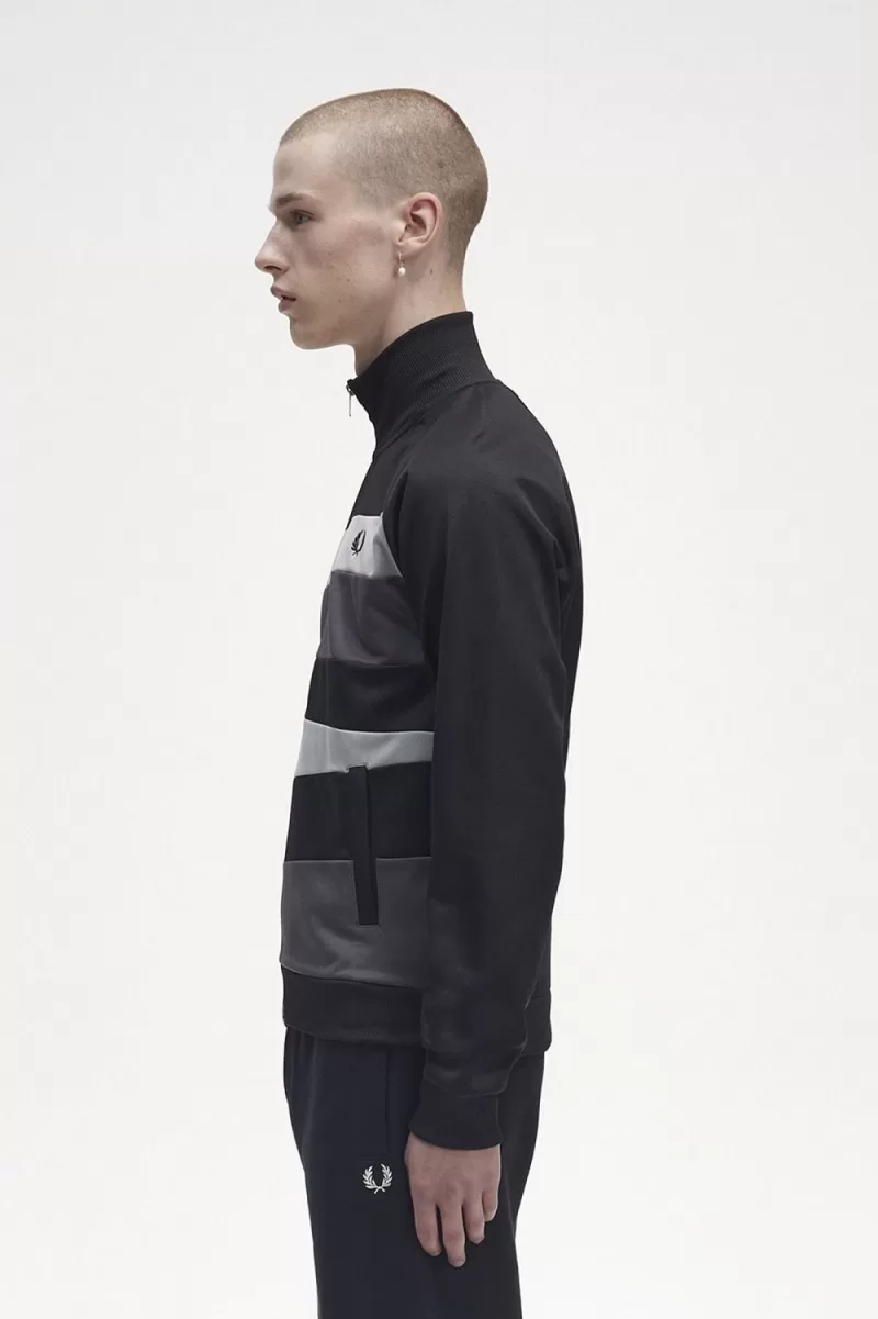 Fred Perry Contrast Panel Men’s Track Jackets Black FUKLT7103