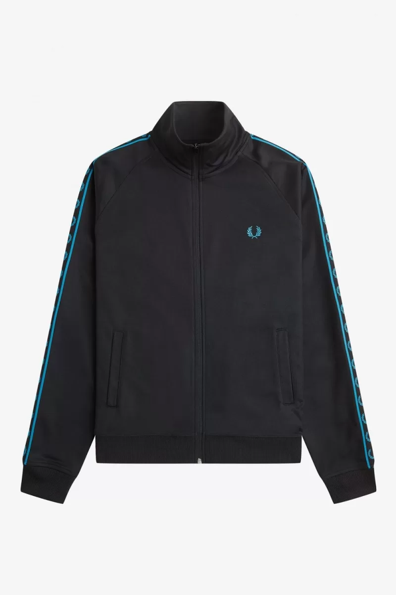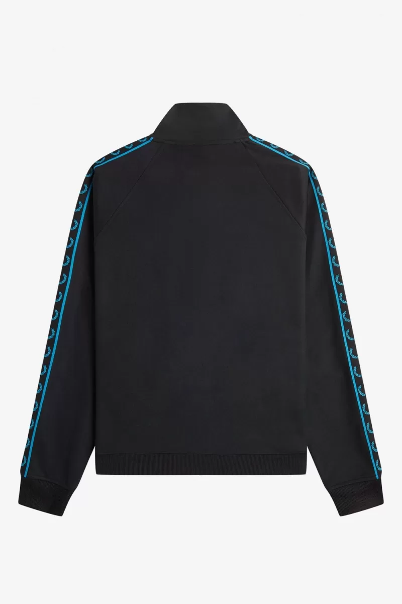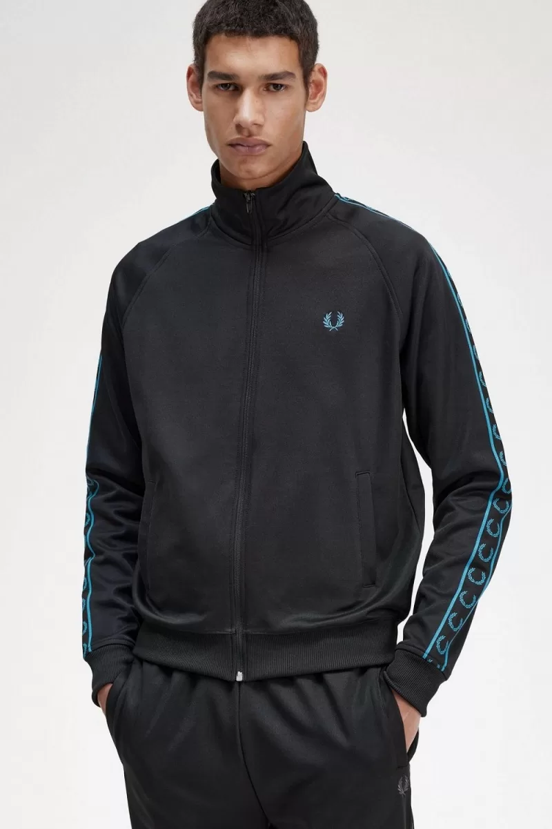 Fred Perry Contrast Tape Men’s Track Jackets Black Cyber Blue BDNSO1607