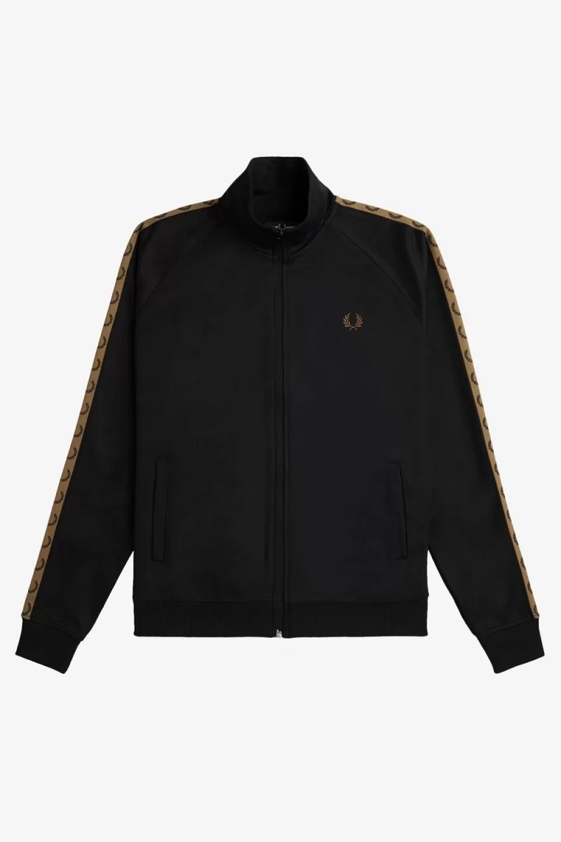 Fred Perry Contrast Tape Men’s Track Jackets Black Green MZWPG8451