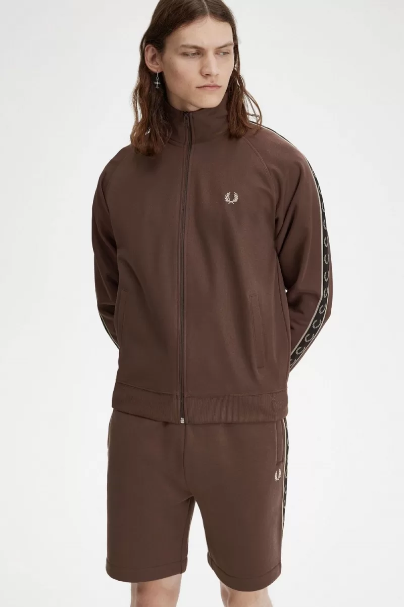 Fred Perry Contrast Tape Men’s Track Jackets Dark Red Warm Grey PENGF1258