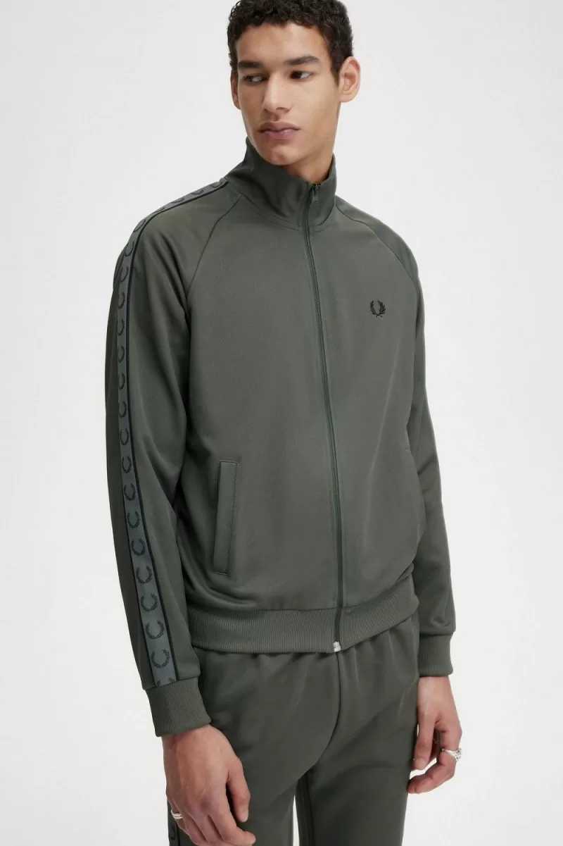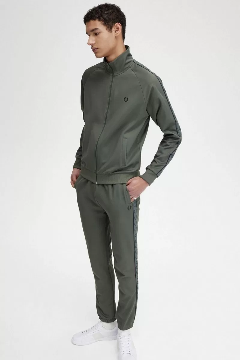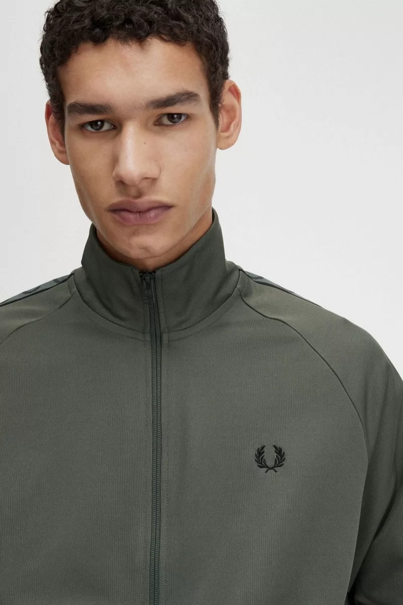 Fred Perry Contrast Tape Men’s Track Jackets Field Green Black XOMAS7806