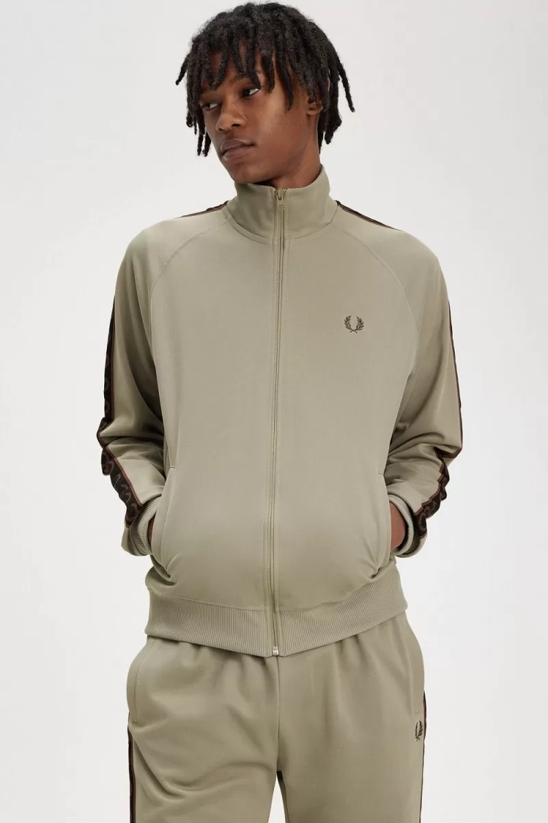 Fred Perry Contrast Tape Men’s Track Jackets Warm Grey Dark Red KSRAT0179