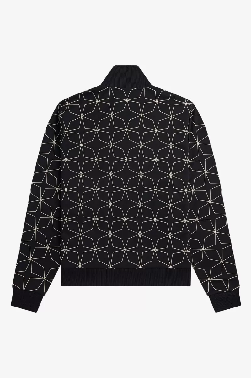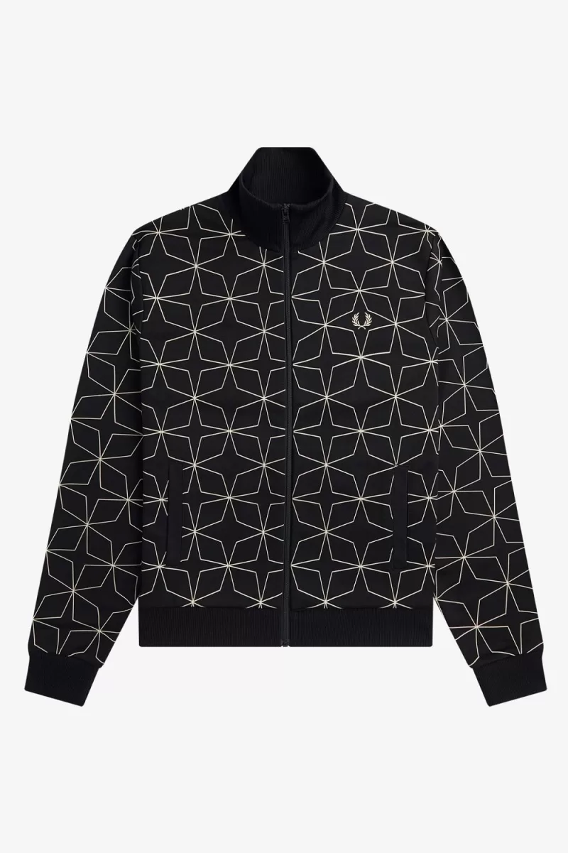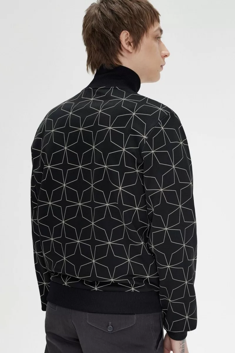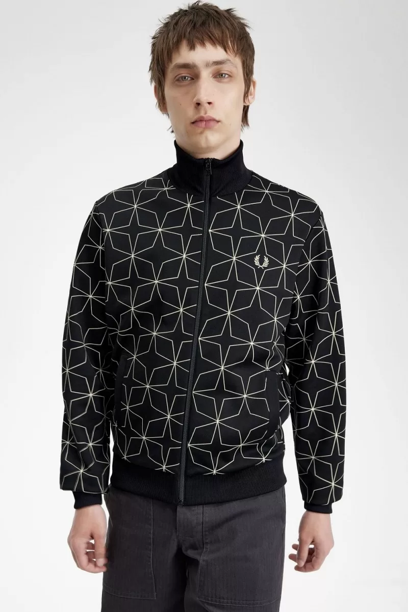 Fred Perry Geometric Print Men’s Track Jackets Black PQUJO2649