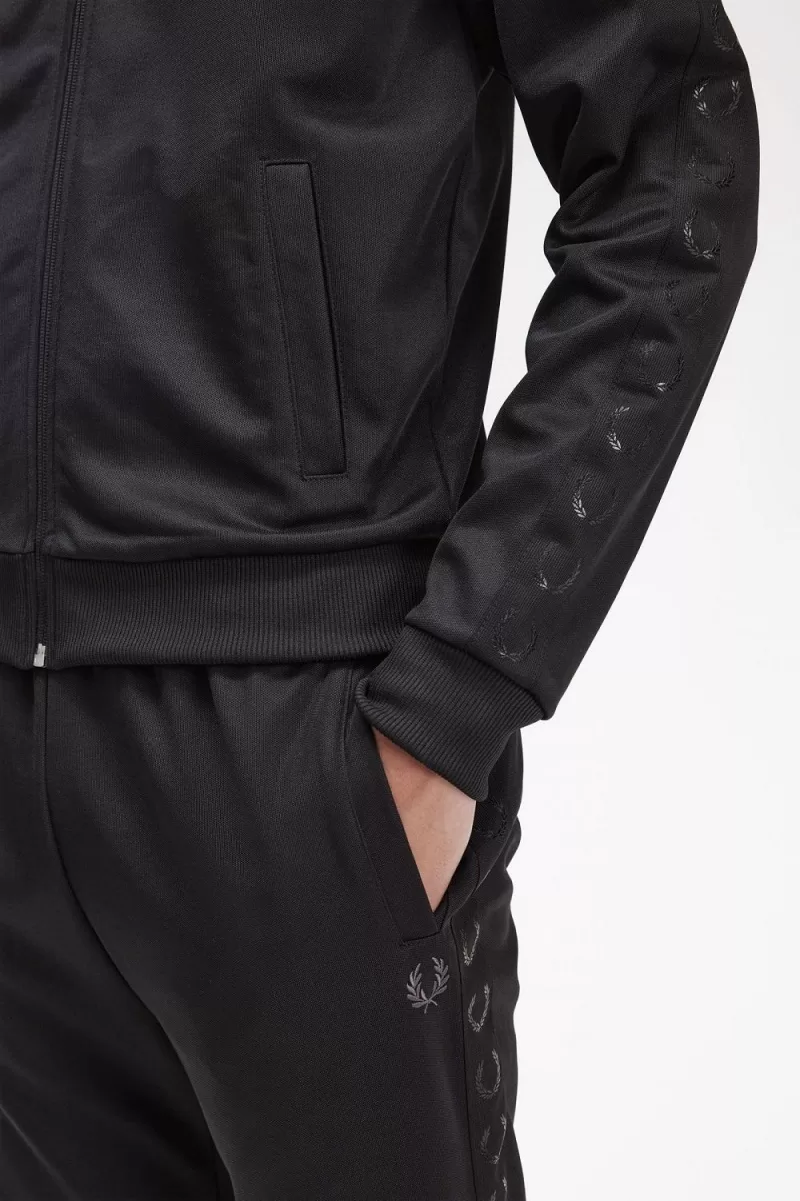 Fred Perry Tonal Tape Men’s Track Jackets Black HOZMV6329