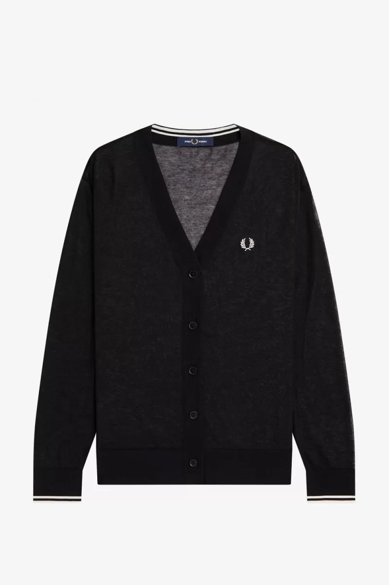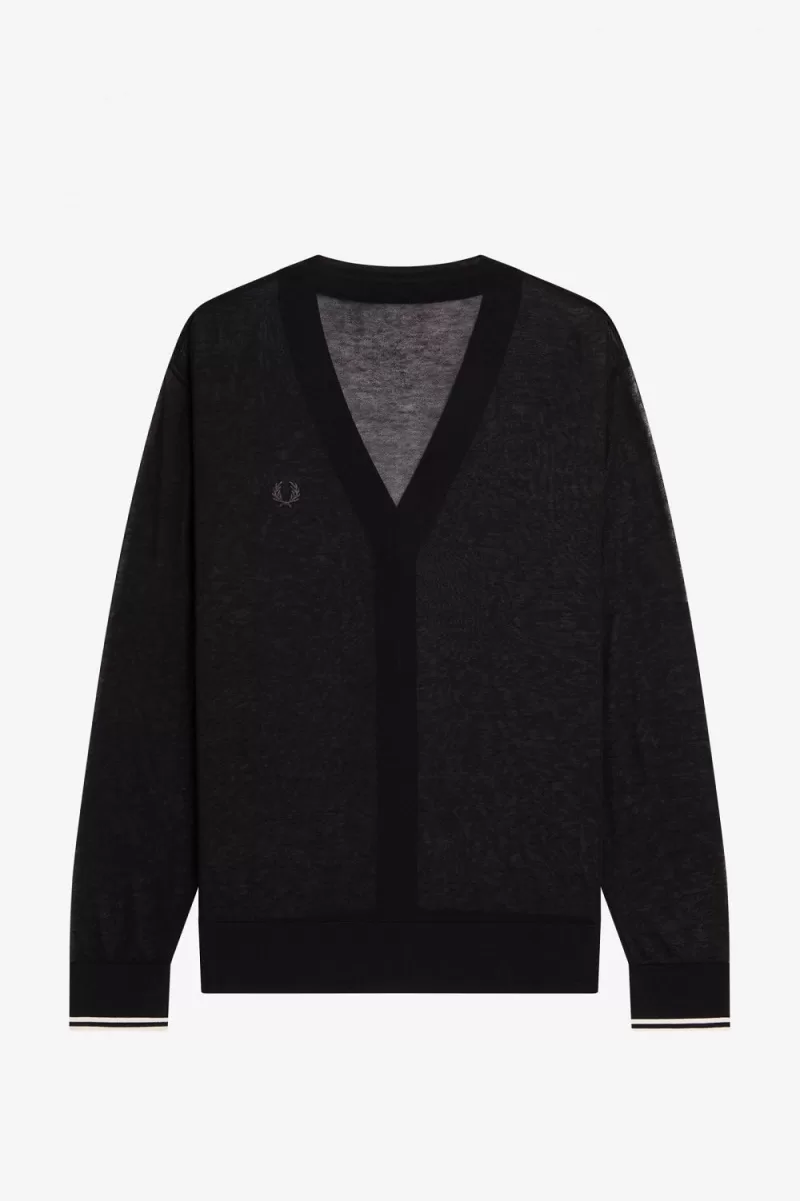 Fred Perry Sheer V-Neck Women’s Cardigan Black FHVWS7913