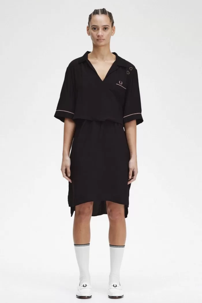 Home Women Clothing Dress Fred Perry Bowling Shirt Women’s Dress Black FGYBX6235