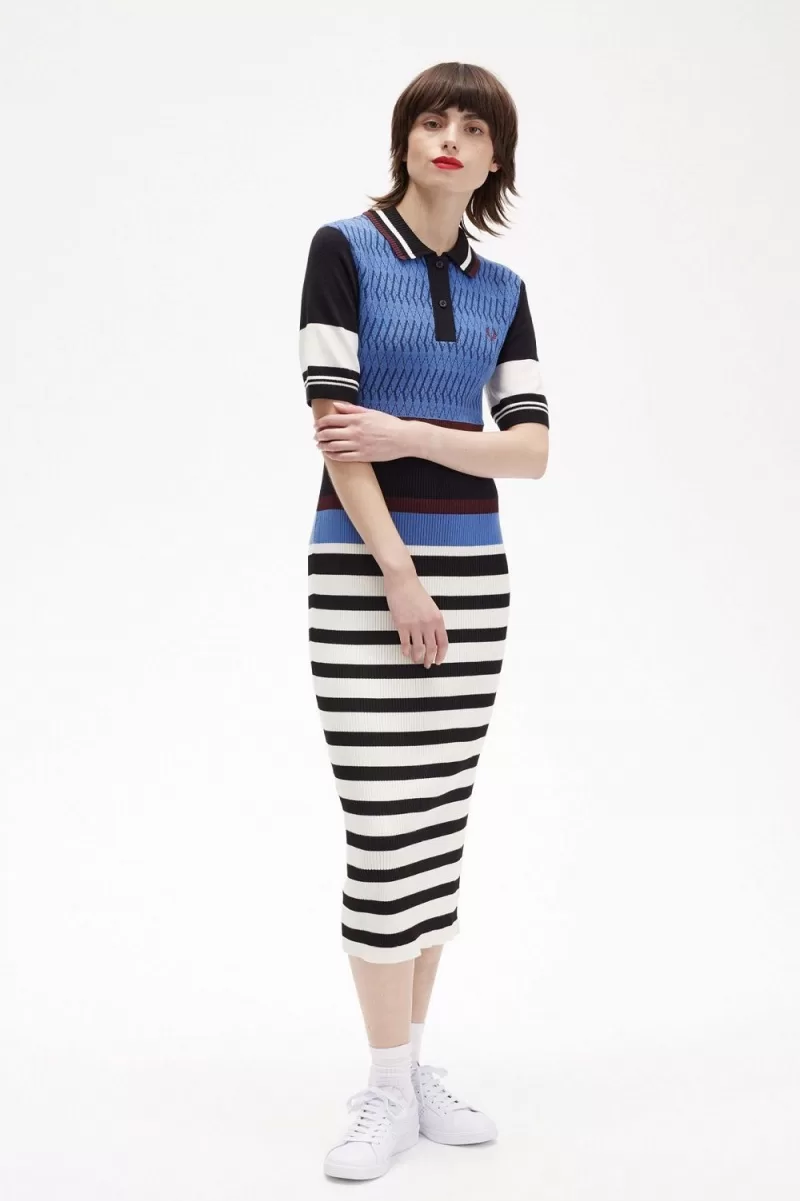 Fred Perry Jacquard Knitted Stripe Women’s Dress Twilight Blue QJMKX9468