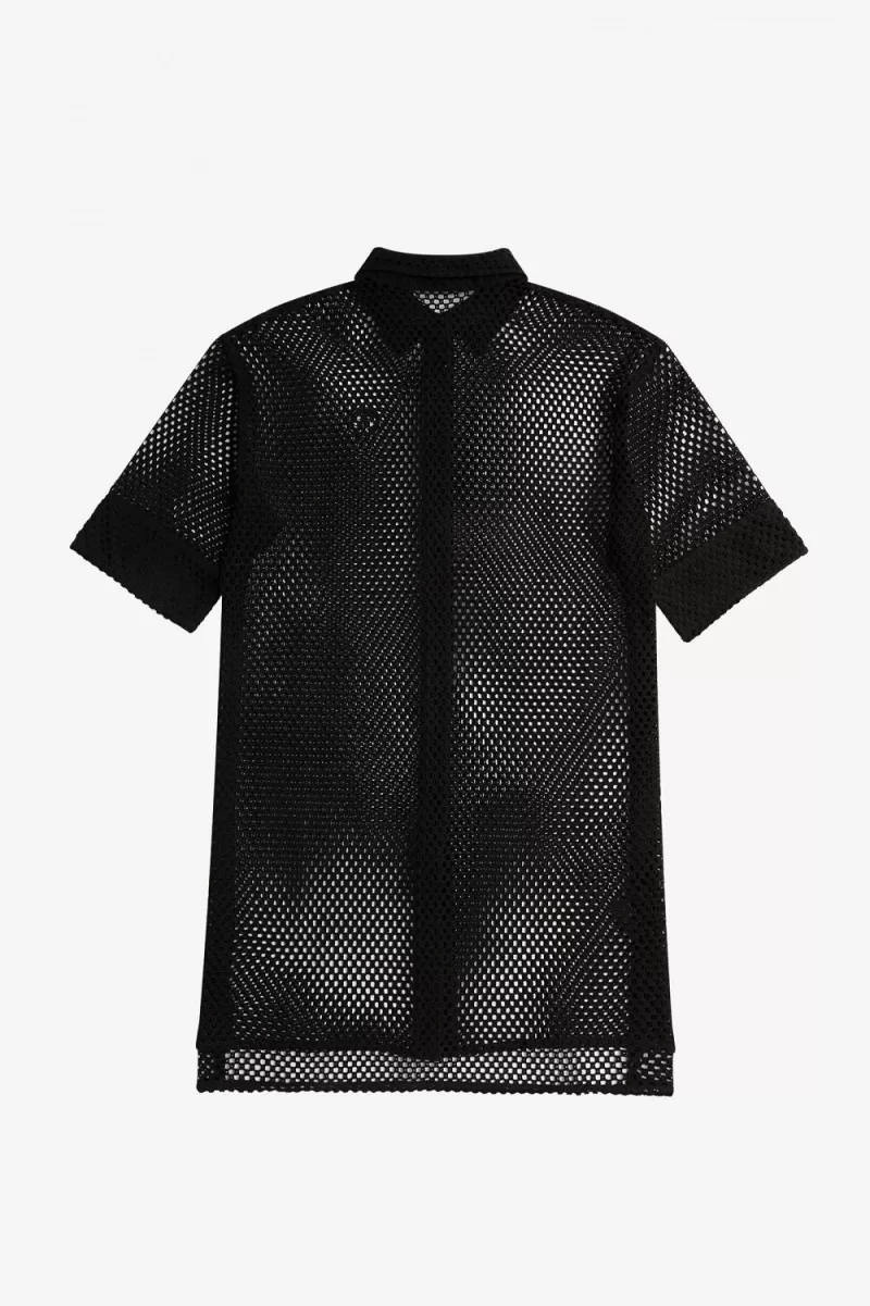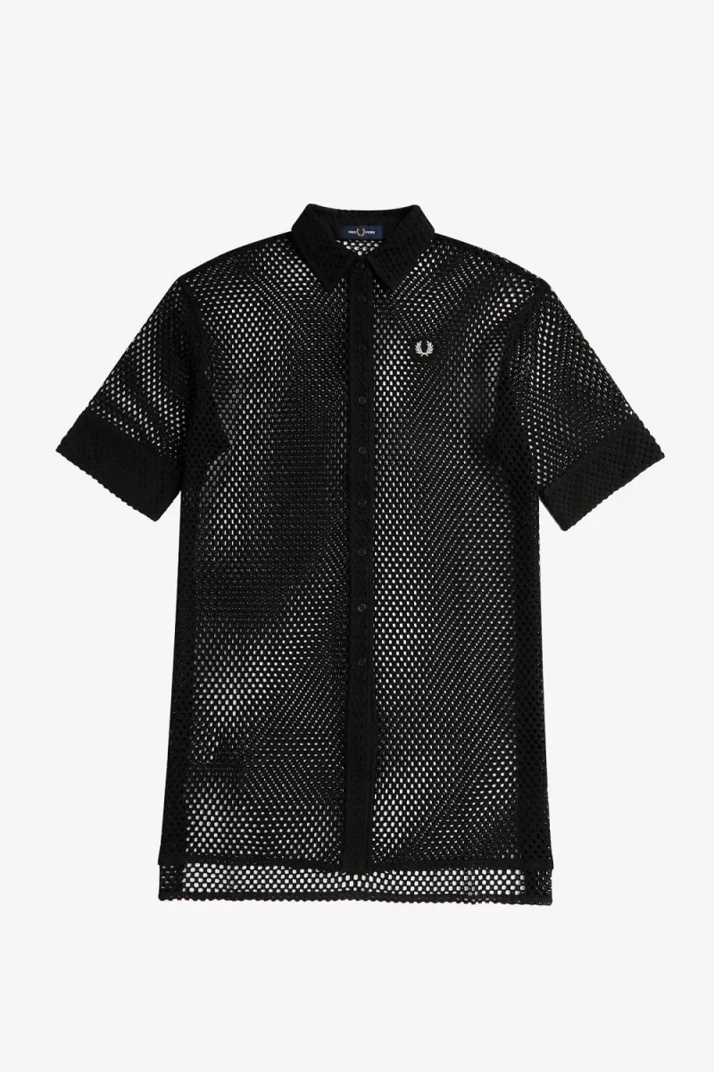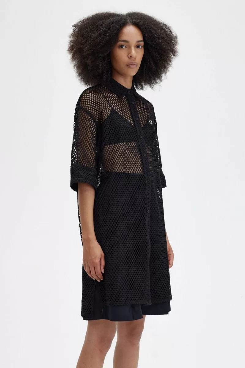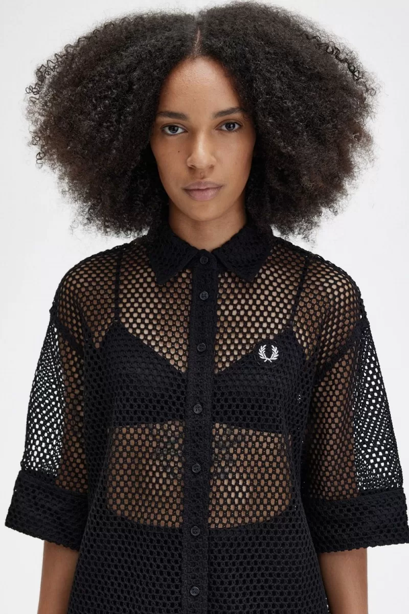 Fred Perry Open-Knit Shirt Women’s Dress Black VZNCE5038