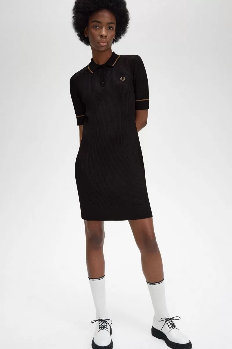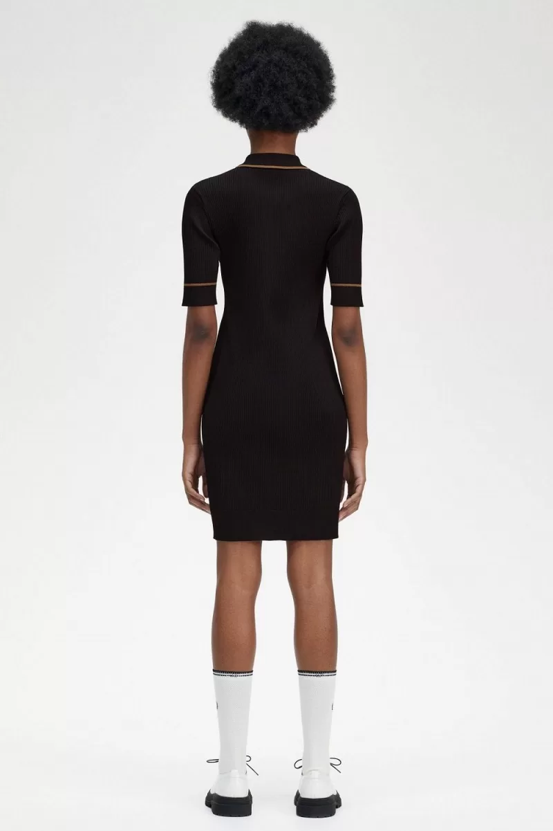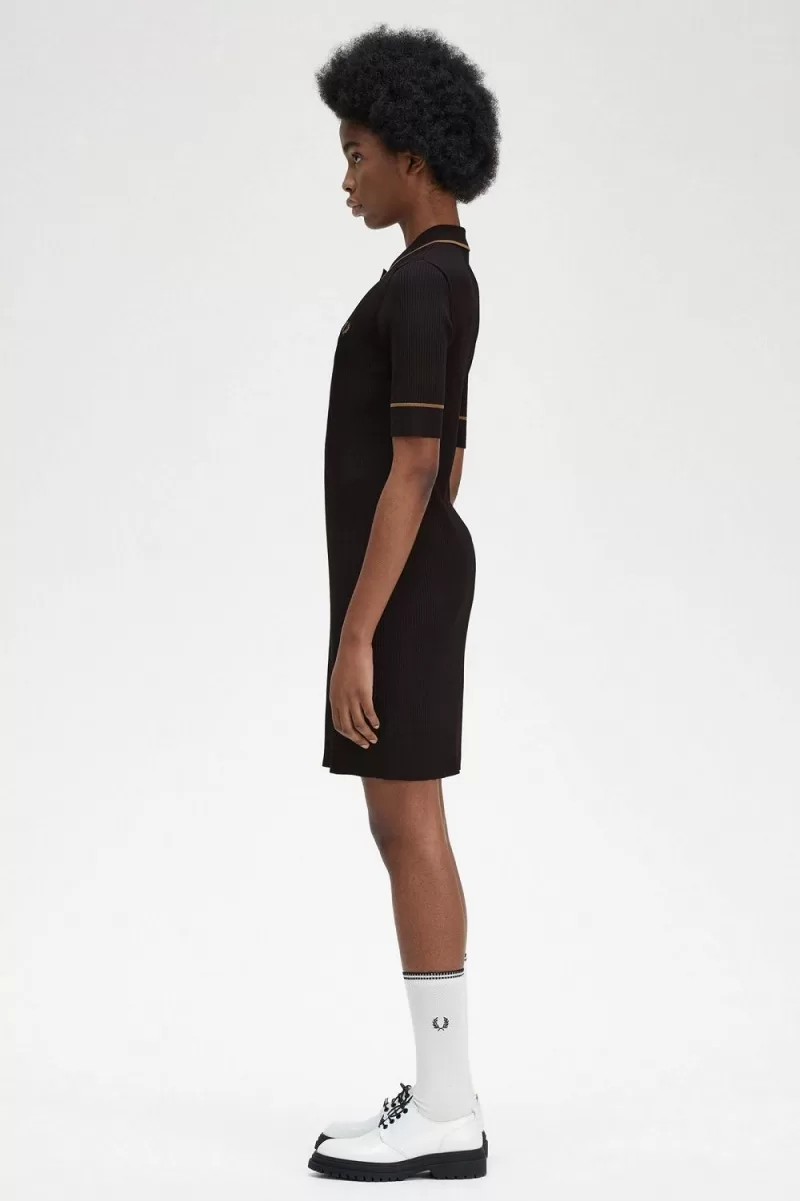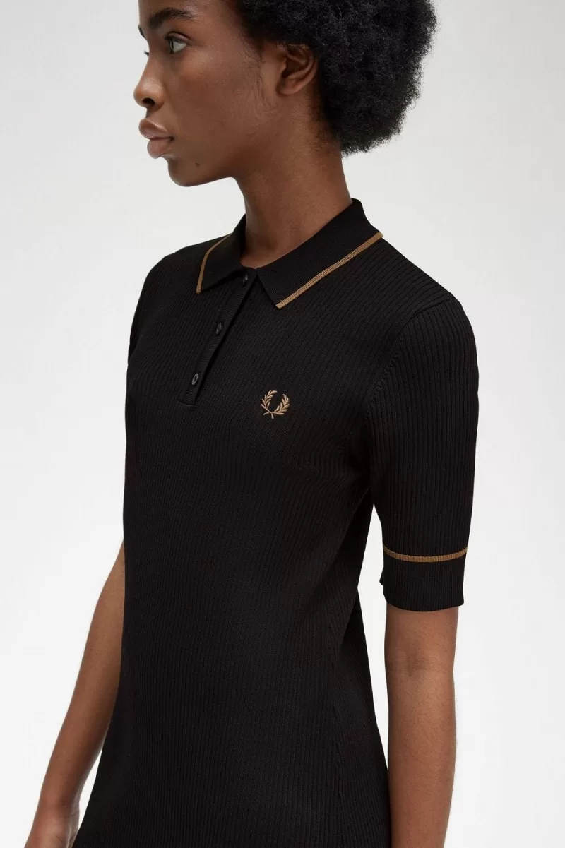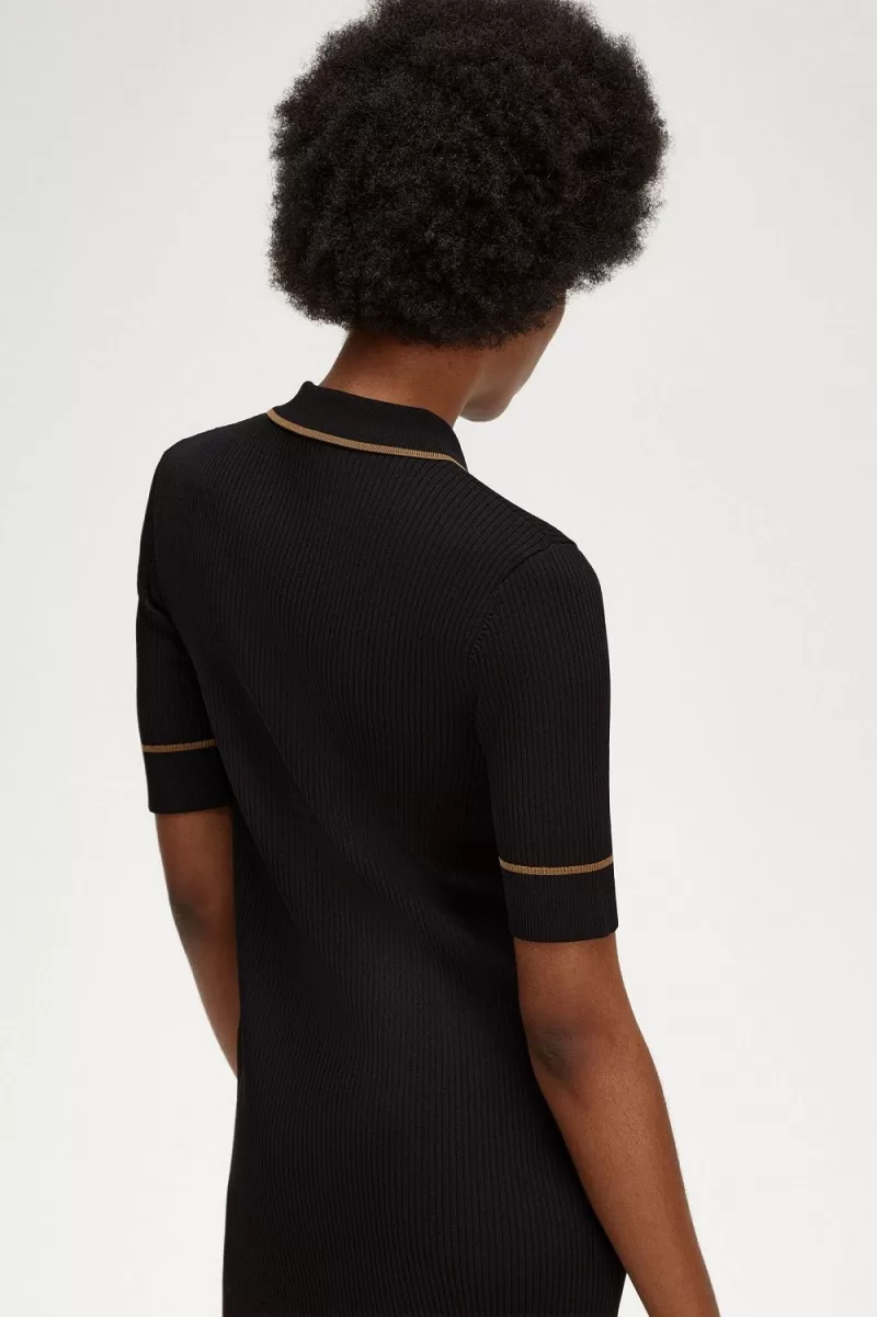 Fred Perry Ribbed Knitted Shirt Women’s Dress Black GFDRW9486
