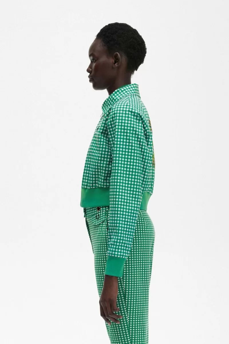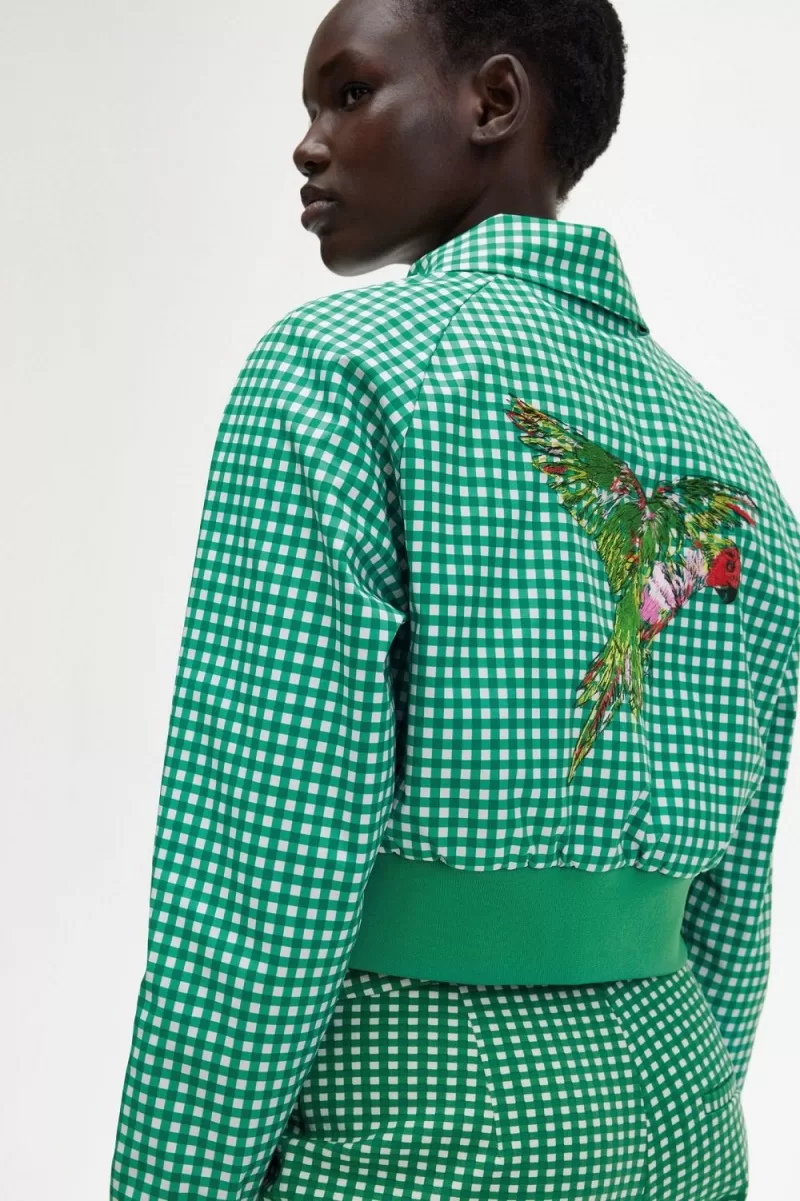 Fred Perry Embroidered Gingham Women’s Jackets Green GABCY6815