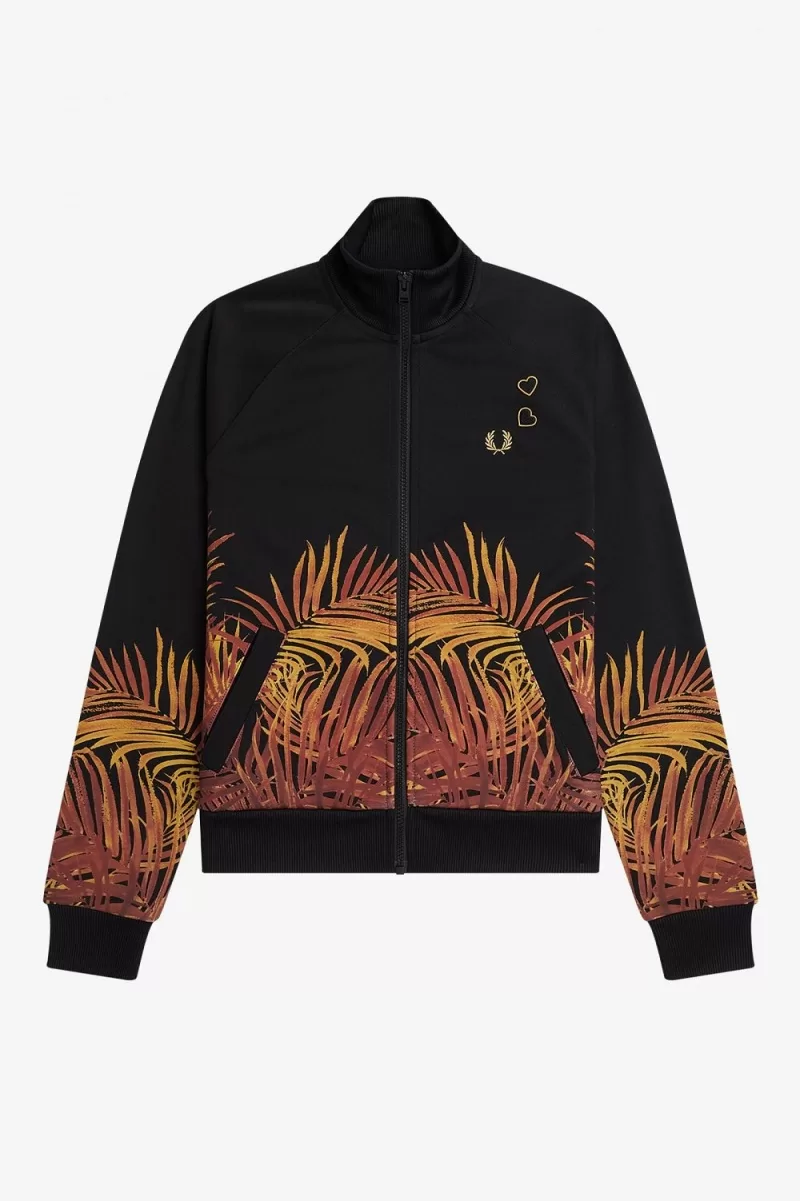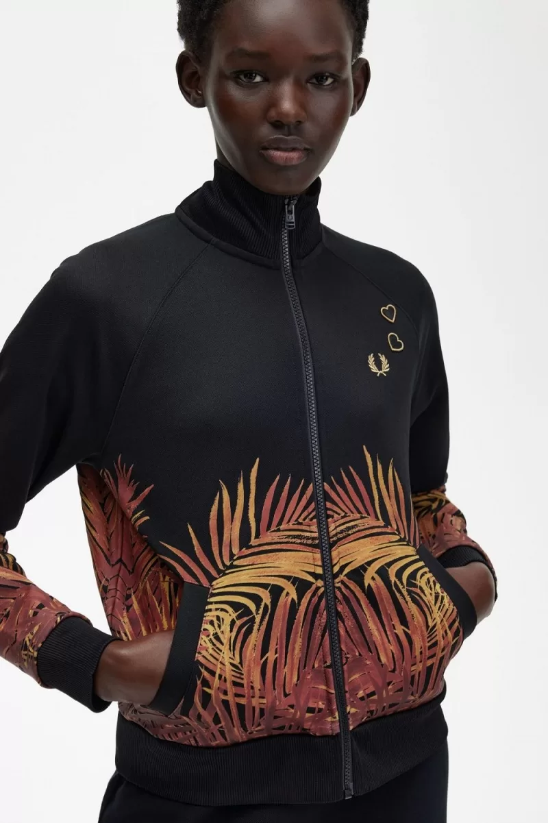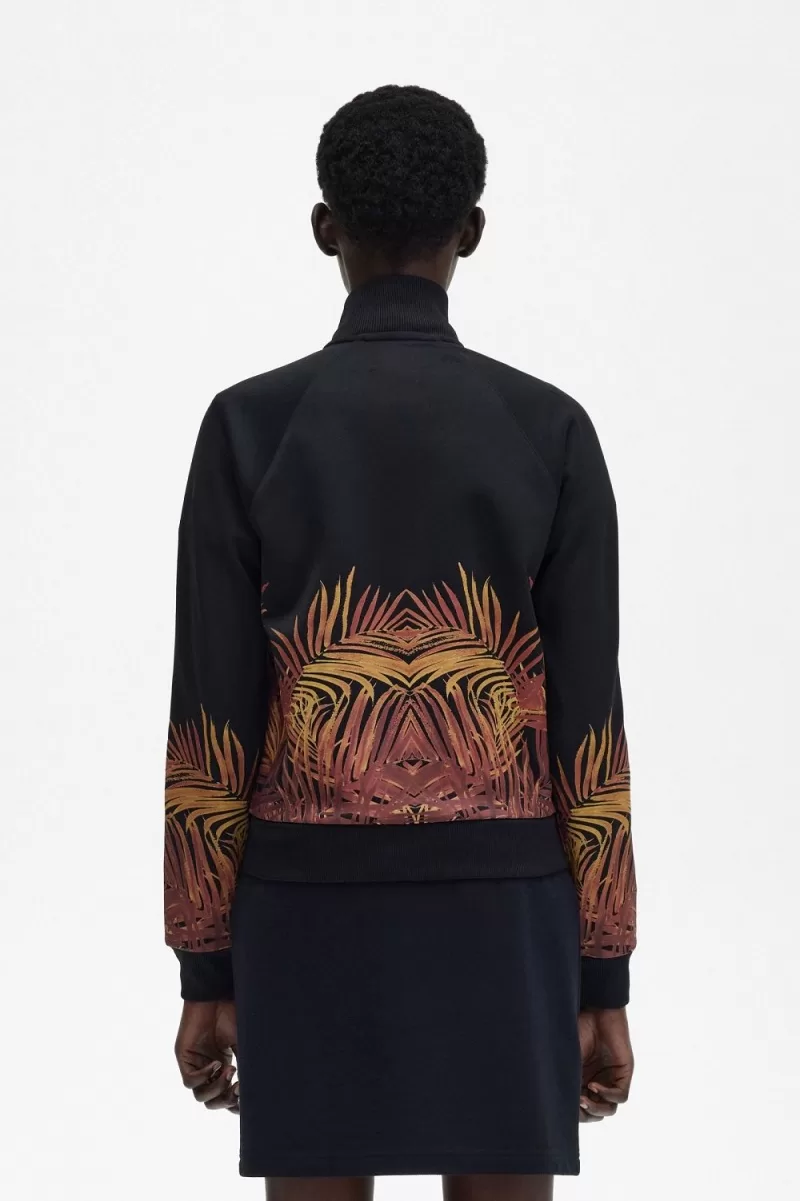 Fred Perry Palm Print Track Women’s Jackets Black CQAIW1926