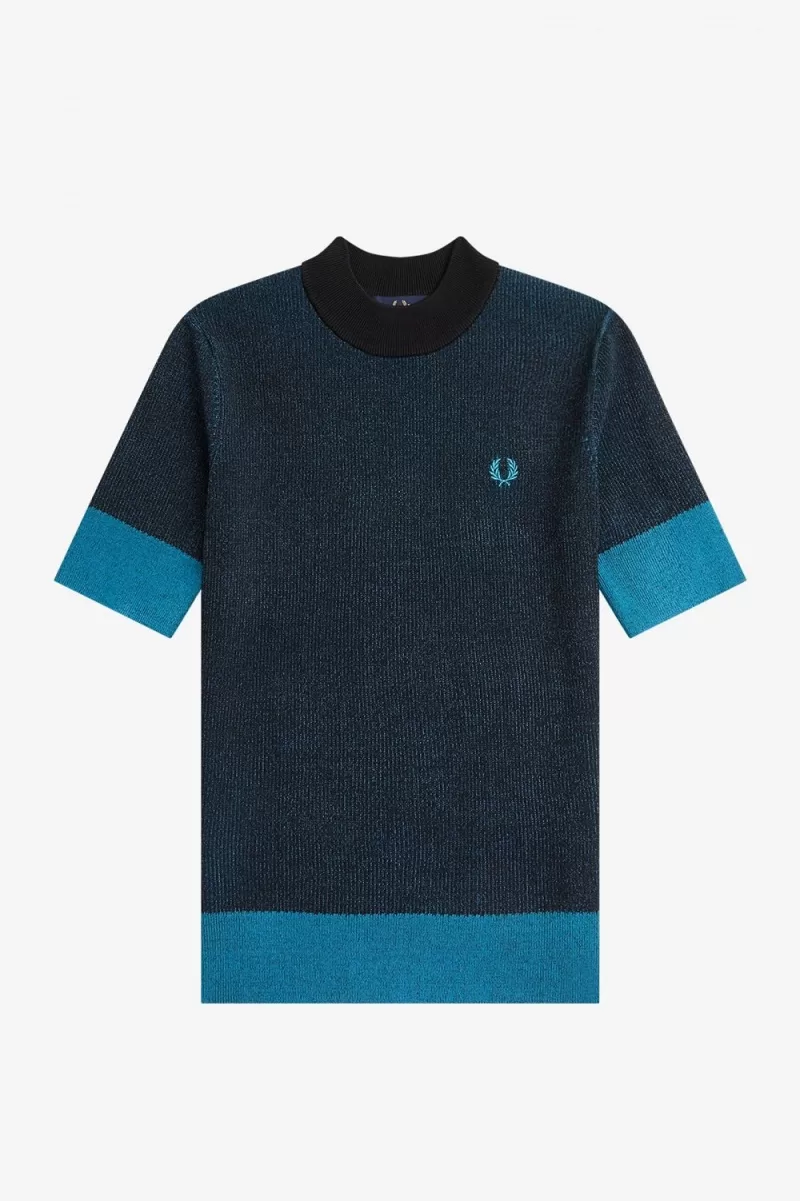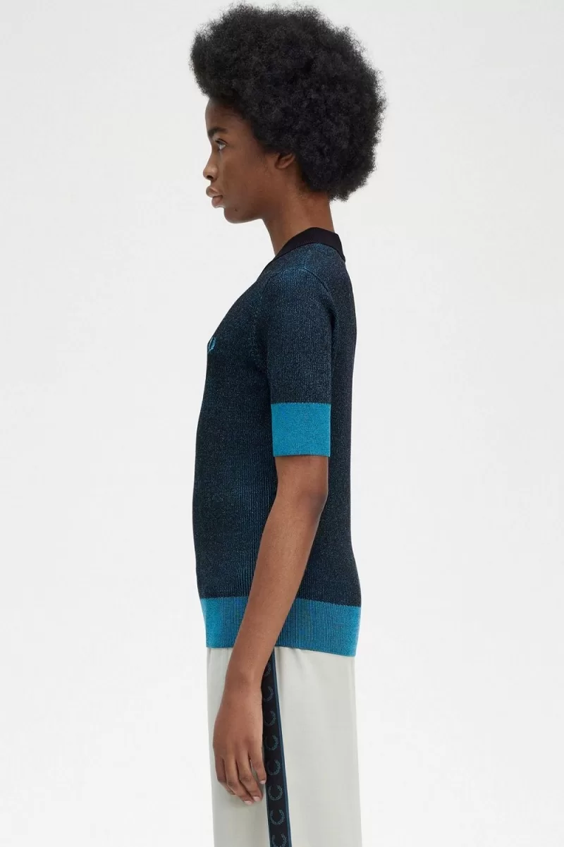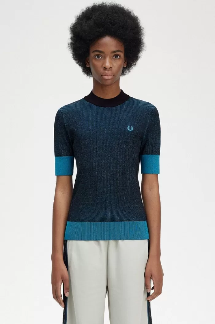 Fred Perry Contrast Rib Short Sleeve Women’s Jumper Black XHFQO7019