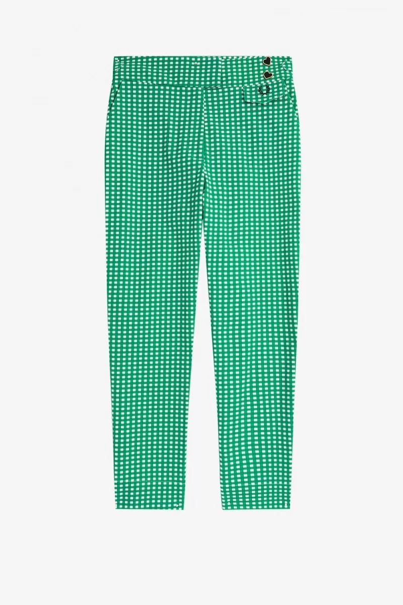 Fred Perry Gingham Women’s Pants Green BQUSC7819