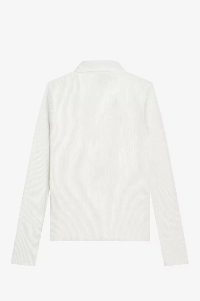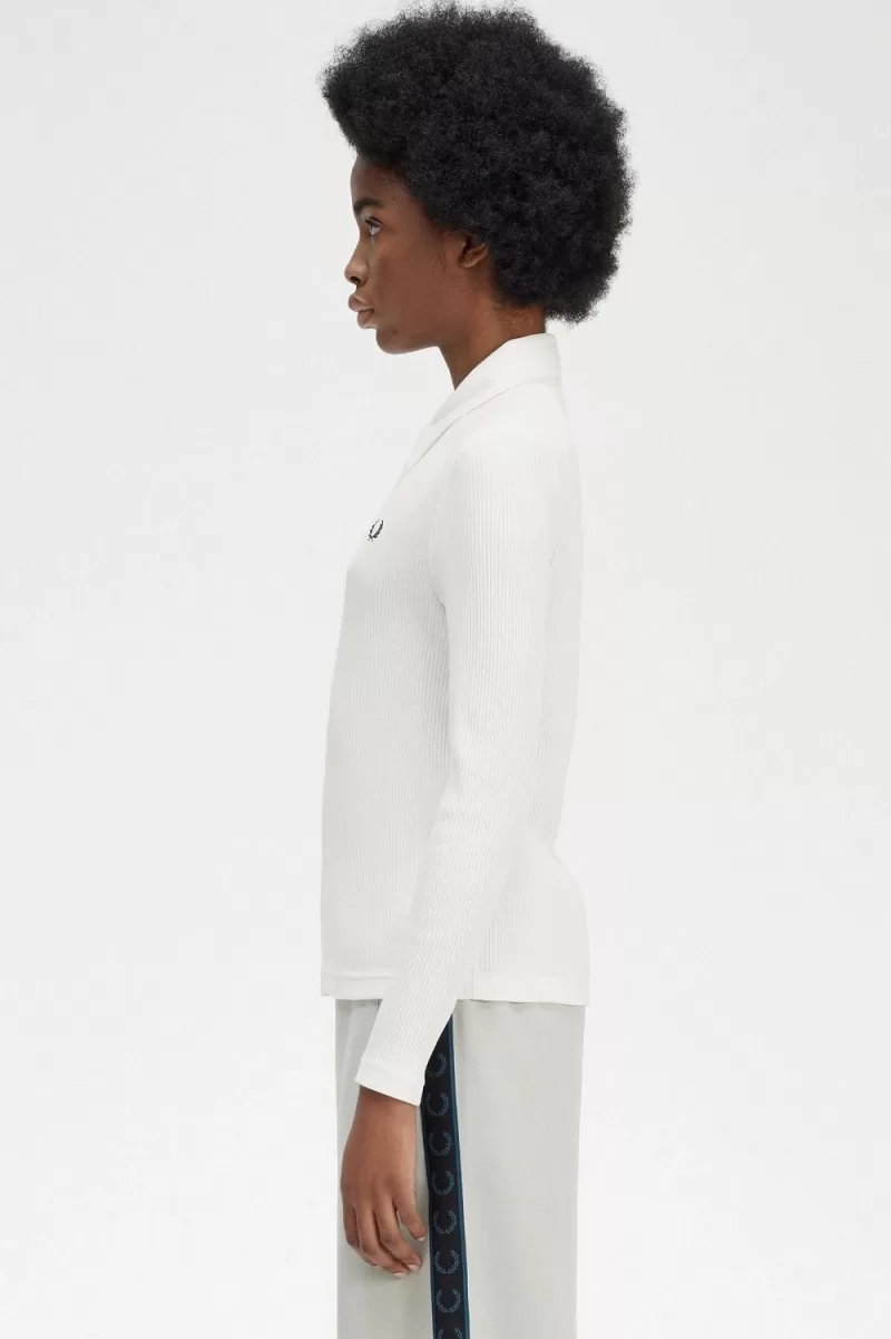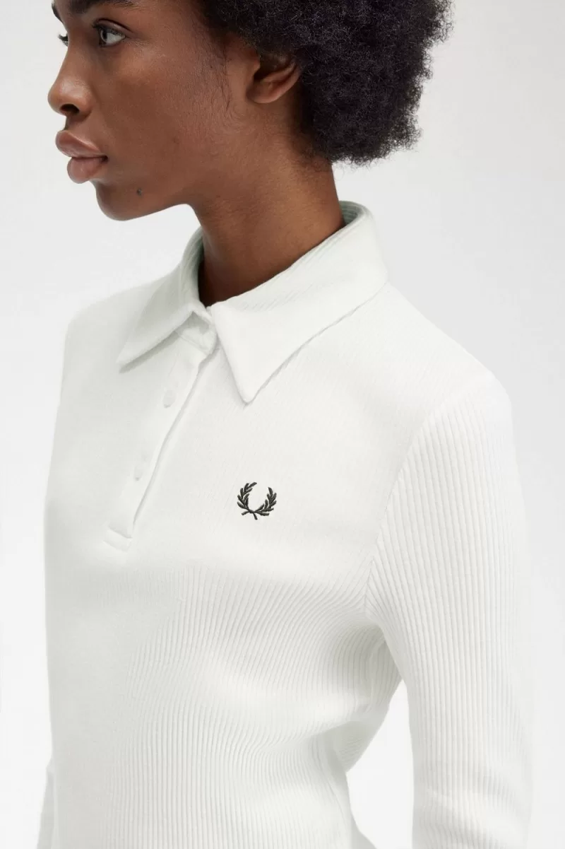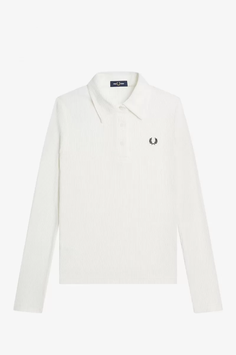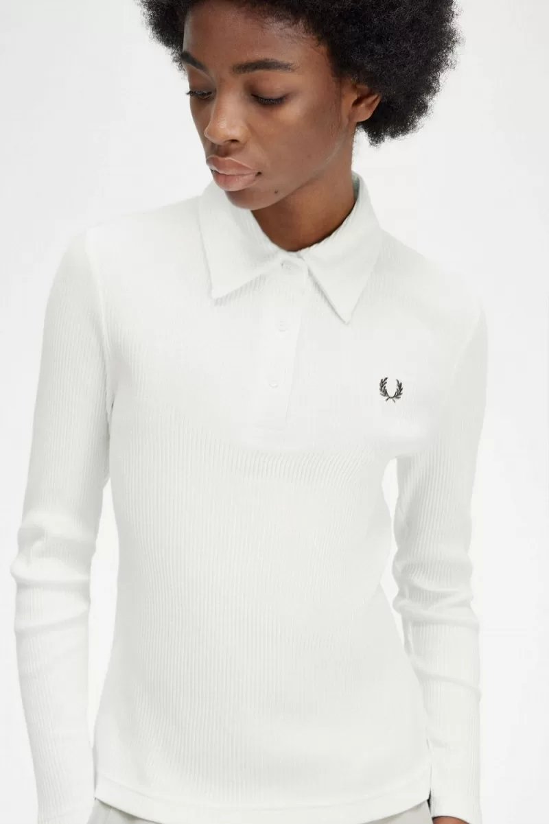 Fred Perry Long Sleeve Ribbed Women’s Polo Shirt Snow White MPDJW6439