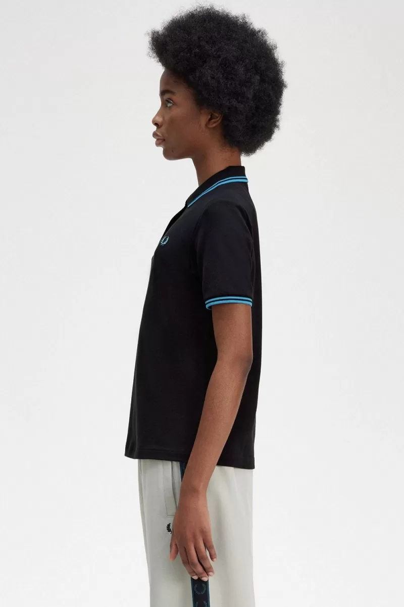 Fred Perry G3600 Women’s Shirt Black Cyber Blue Cyber Blue HRPEO4650
