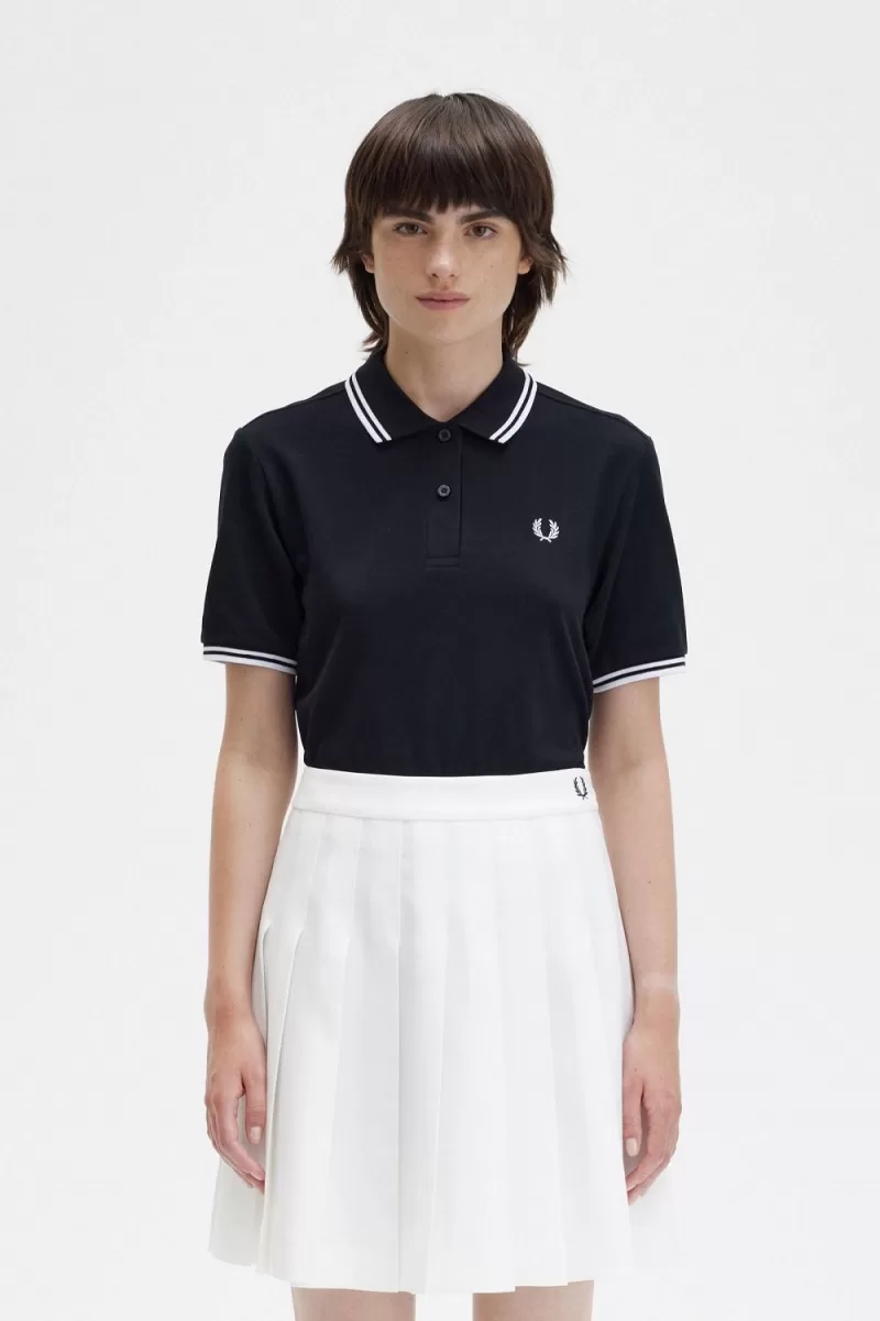 Fred Perry G3600 Women’s Shirt Black White SEHZU7460
