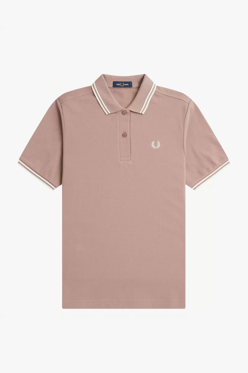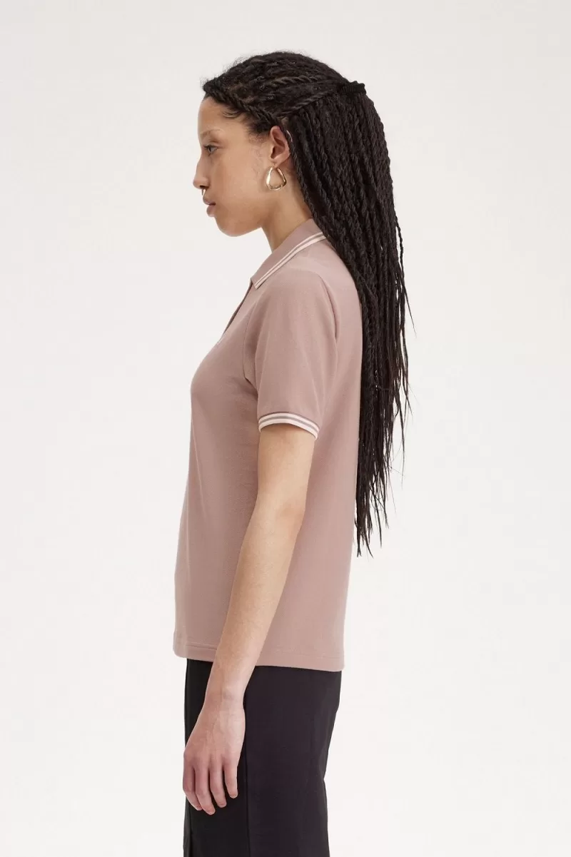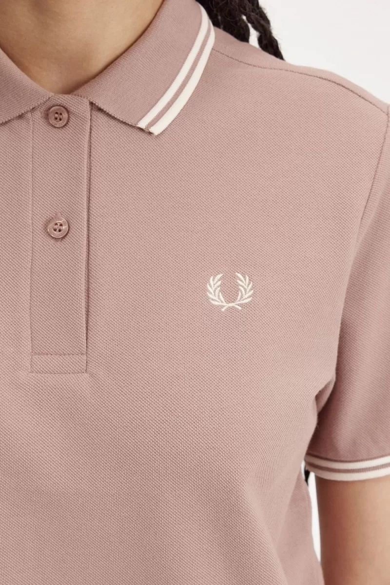Fred Perry G3600 Women’s Shirt Dark Pink Beige CDYMT9431