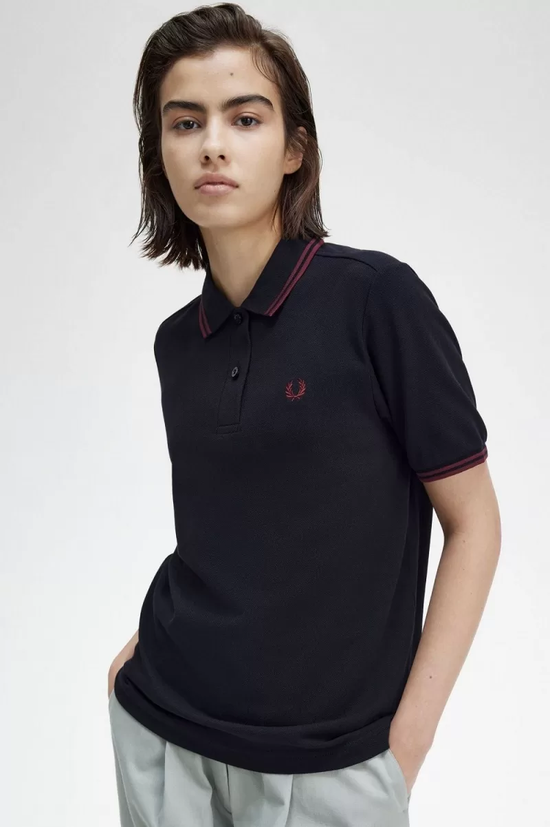 Fred Perry G3600 Women’s Shirt Navy Oxblood Oxblood IQGMO4268