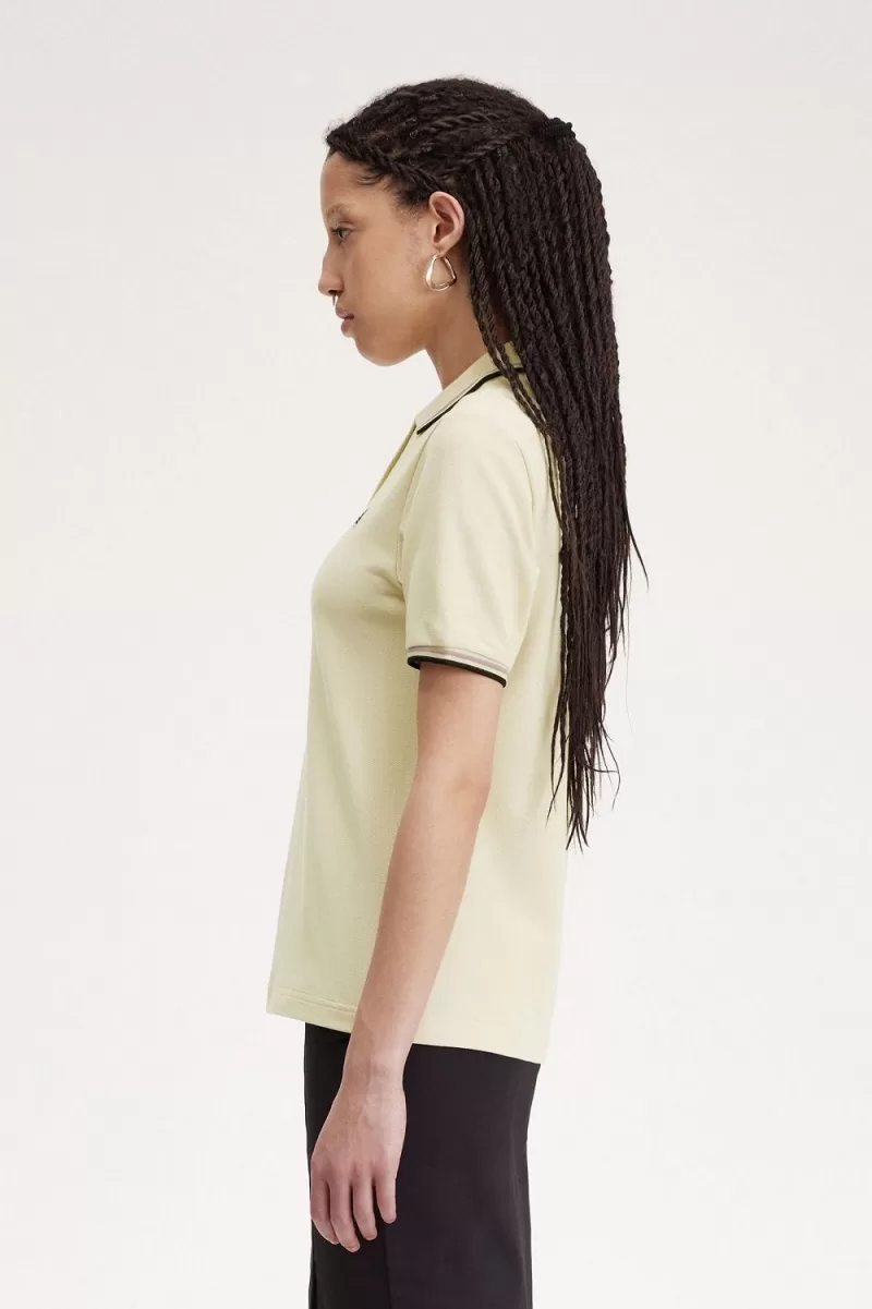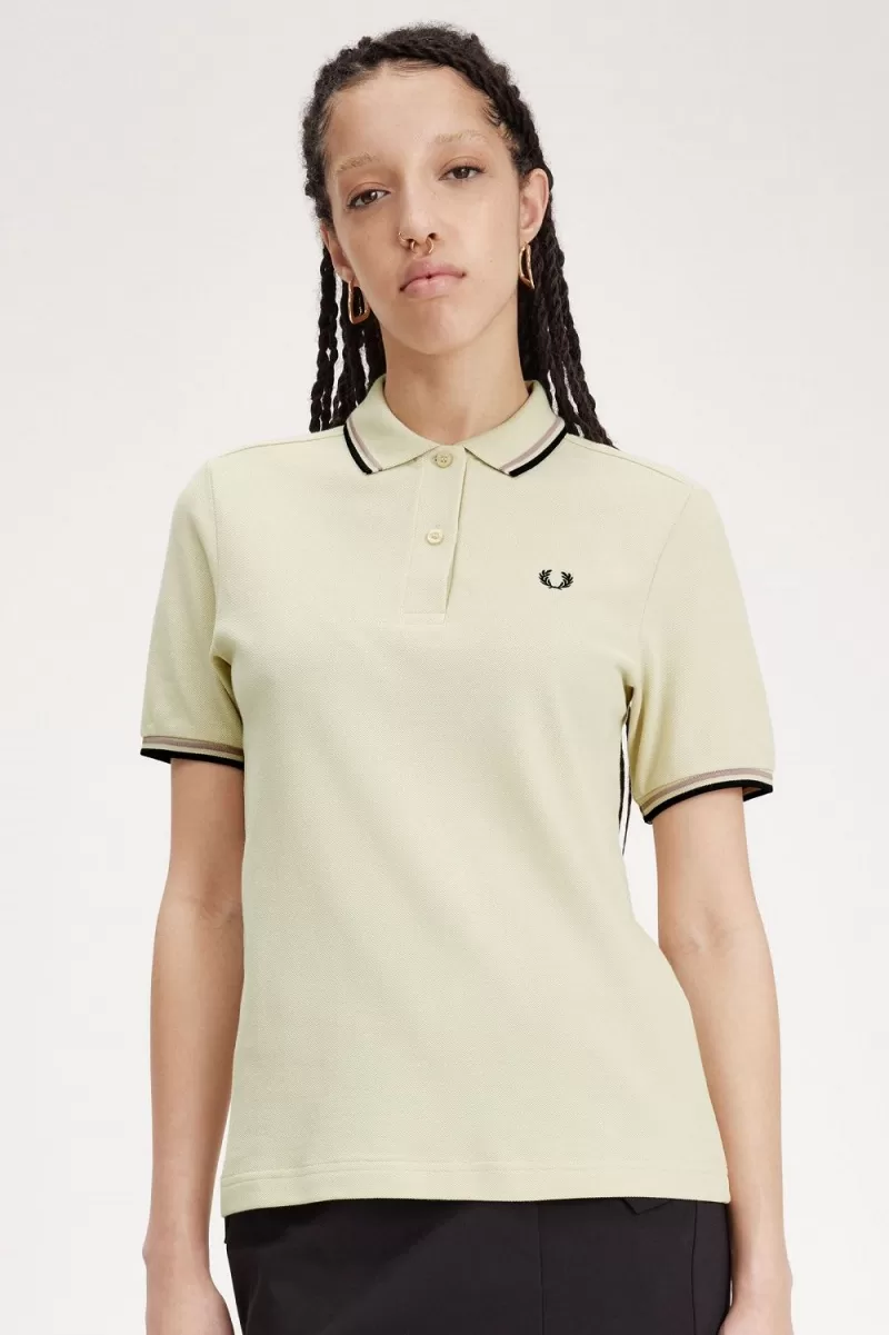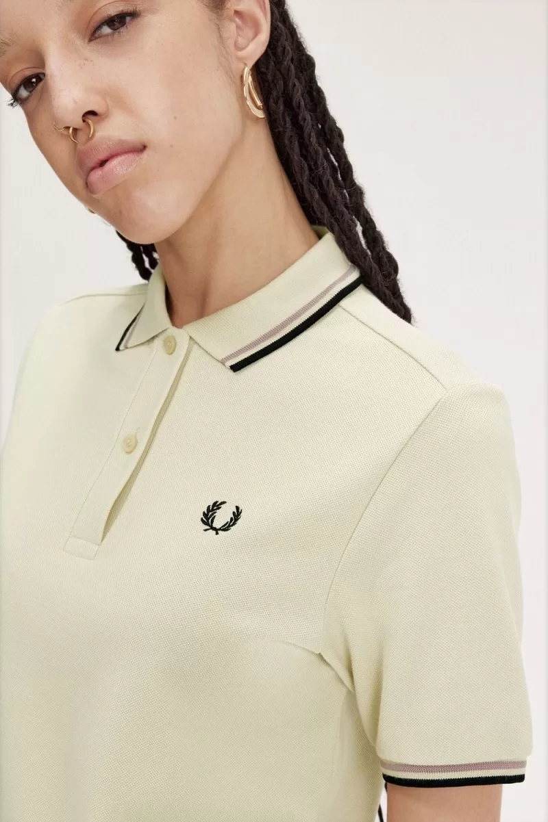 Fred Perry G3600 Women’s Shirt Oatmeal Dark Pink Black NFUBS7143