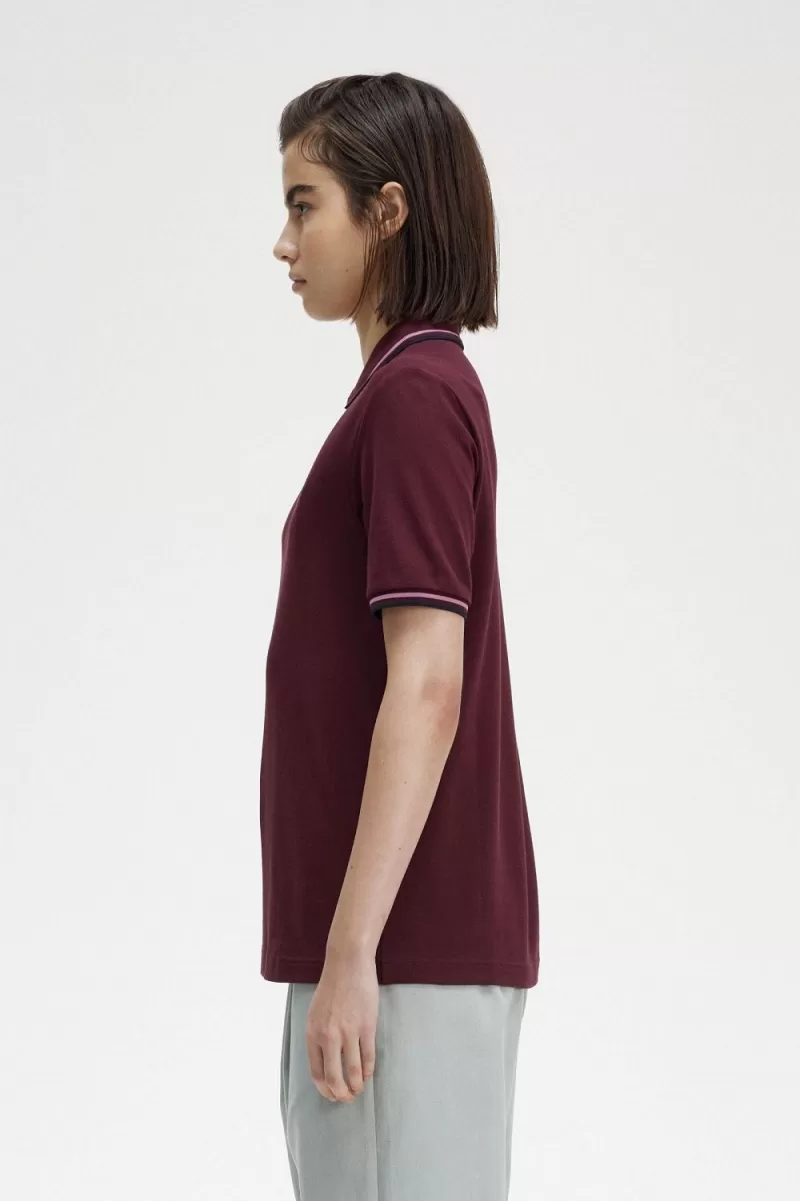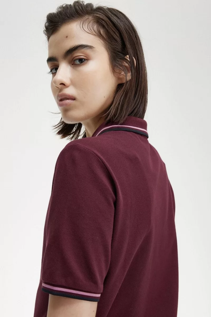 Fred Perry G3600 Women’s Shirt Oxblood Dusty Rose Pink Black NCJPS3290