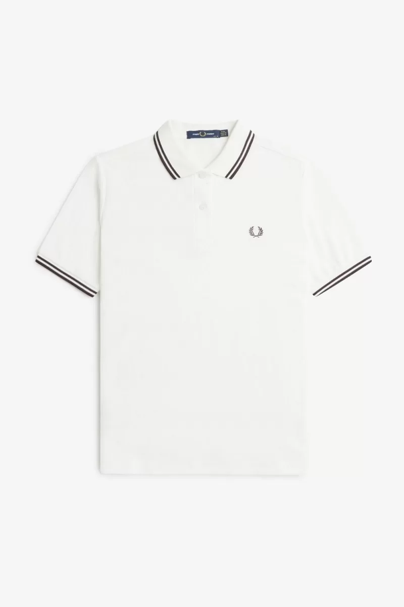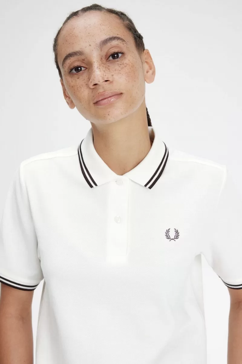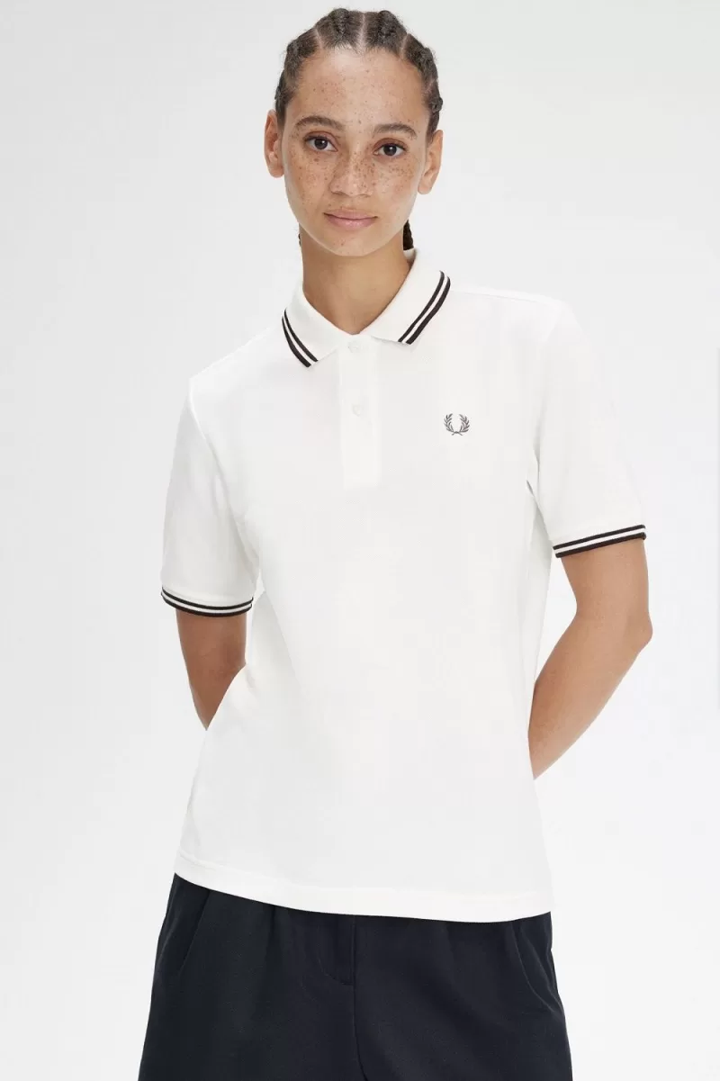 Fred Perry G3600 Women’s Shirt Snow White Dark Red NGMYX2509