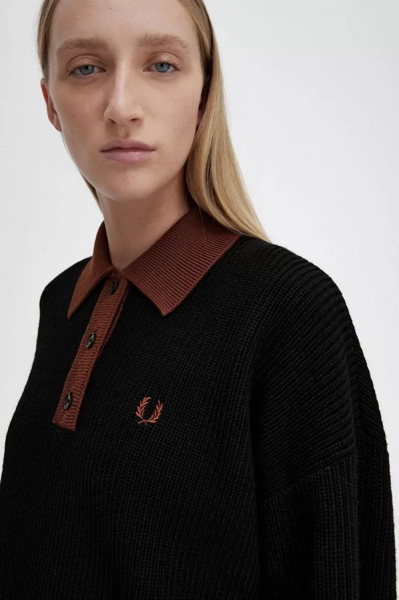 Fred Perry Knitted Women’s Shirt Black OIPXJ2357