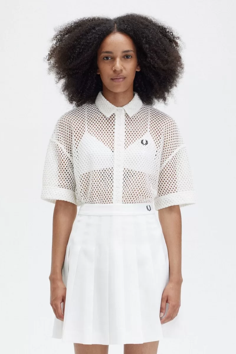 Fred Perry Open-Knit Women’s Shirt Snow White UGVMT6751
