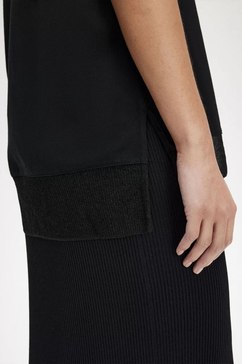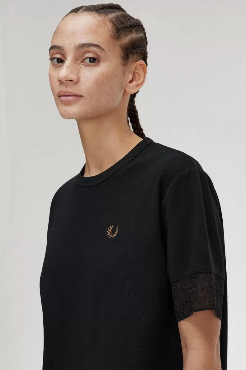 Fred Perry Sheer Trim Piqué Women’s T-Shirt Black INADH4935