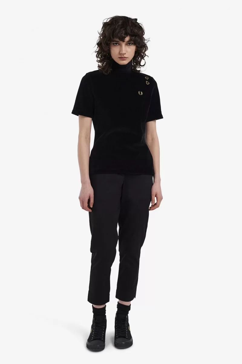 Fred Perry Velour Women’s T-Shirt Black ZUDVG1047