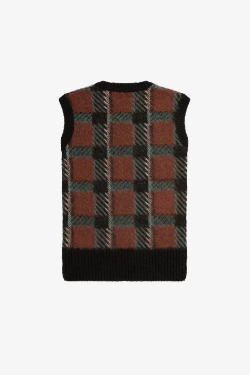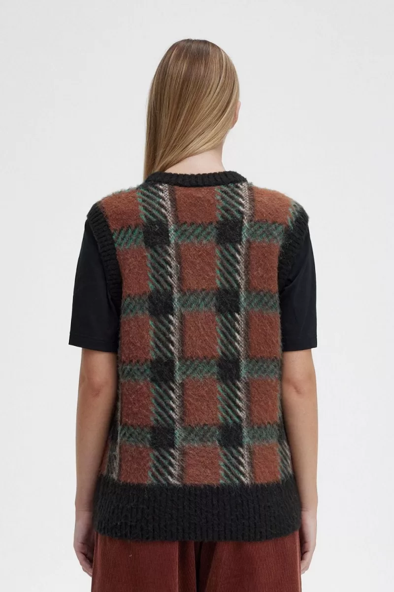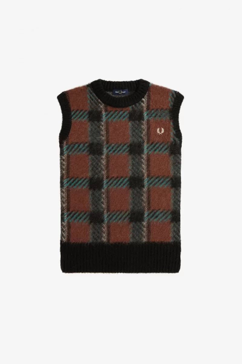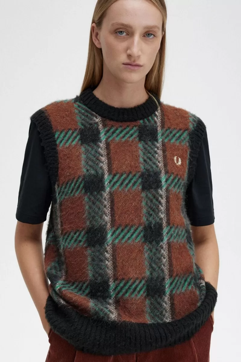 Fred Perry Glitch Tartan Knitted Women’s Tanks Whisky Brown SPNDB5312