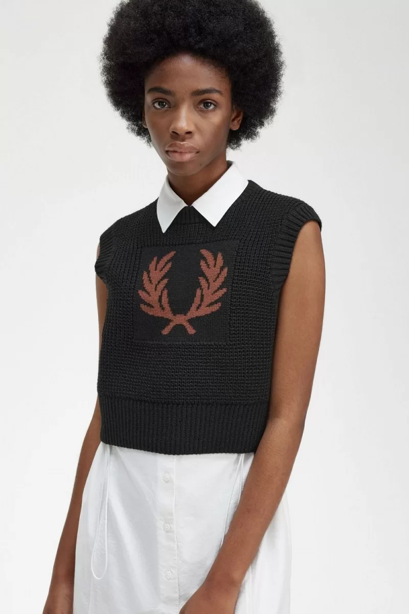 Fred Perry Laurel Wreath Knitted Women’s Tanks Black LOKNA6231